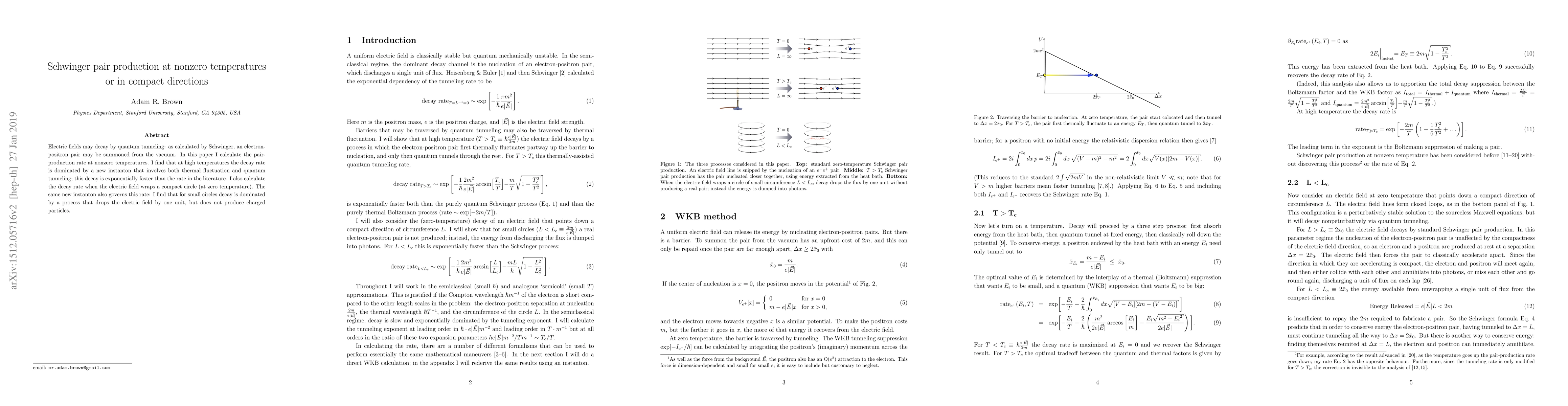 Researchers found a faster decay rate for electric fields at high temperatures due to a new instanton process involving thermal fluctuations and quantum tunneling. This process also governs the decay rate in compact directions without producing charged particles.