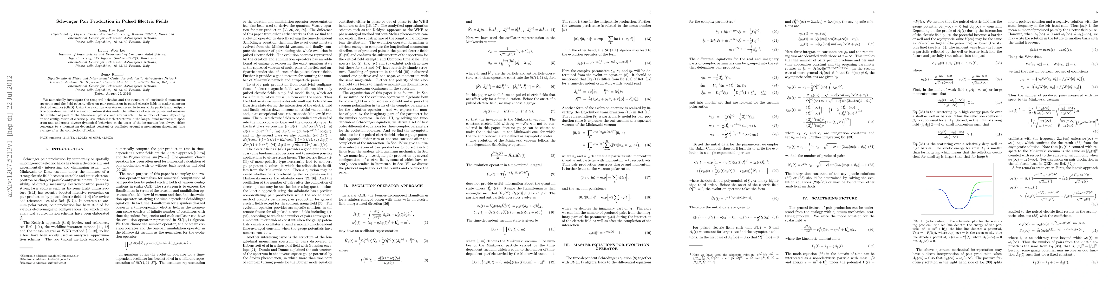 This paper numerically investigates pair production in pulsed electric fields within scalar quantum electrodynamics, revealing complex longitudinal momentum spectra and field polarity effects. The study finds that the number of produced particle-antiparticle pairs exhibits dynamic behavior that stabilizes into either a constant or an oscillating time average.