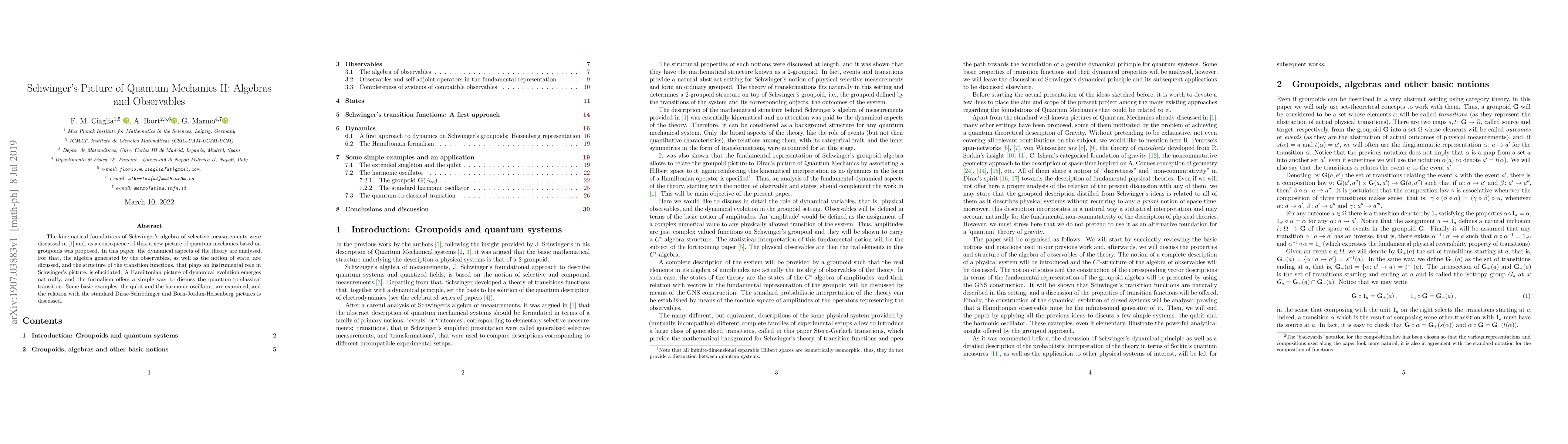 The kinematical foundations of Schwinger's algebra of selective measurements were discussed in a previous paper (arXiv:1905.12274) and, as a consequence of this, a new picture of quantum mechanics based on groupoids was proposed. In this paper, the dynamical aspects of the theory are analysed. For that, the algebra generated by the observables, as well as the notion of state, are dicussed, and the structure of the transition functions, that plays an instrumental role in Schwinger's picture, is elucidated. A Hamiltonian picture of dynamical evolution emerges naturally, and the formalism offers a simple way to discuss the quantum-to-classical transition. Some basic examples, the qubit and the harmonic oscillator, are examined, and the relation with the standard Dirac-Schr\"odinger and Born-Jordan-Heisenberg pictures is discussed.