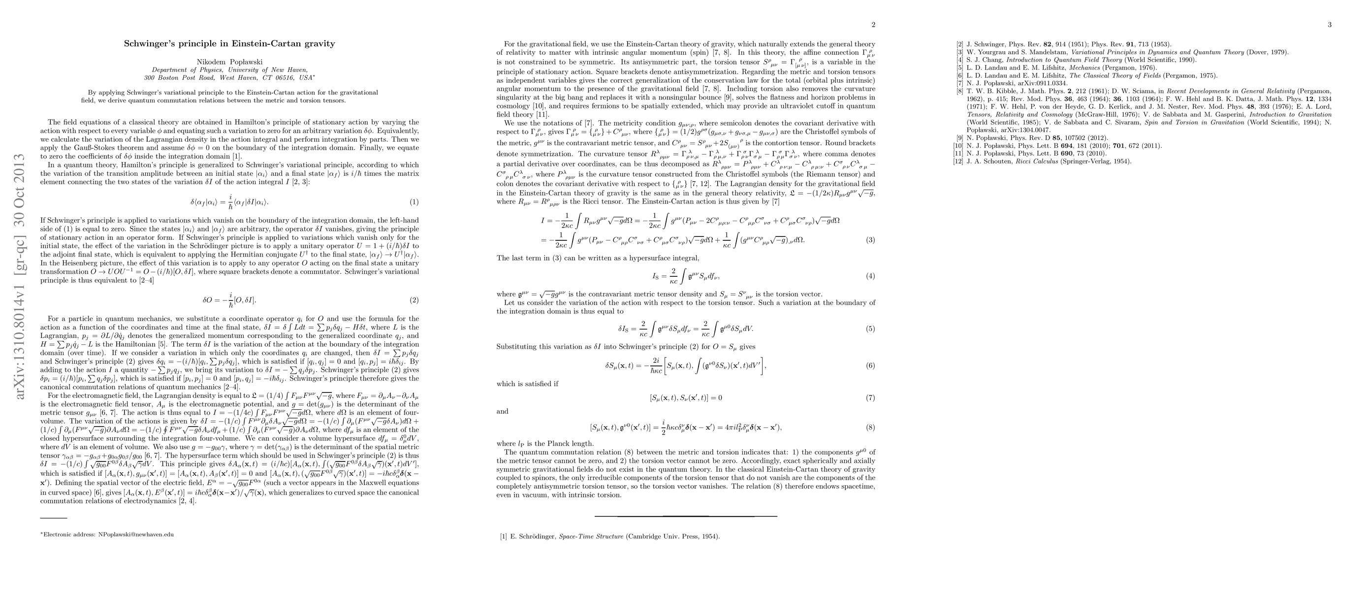 Researchers applied Schwinger's principle to Einstein-Cartan gravity, deriving quantum commutation relations between the metric and torsion tensors that can help understand the behavior of spacetime at the quantum level.