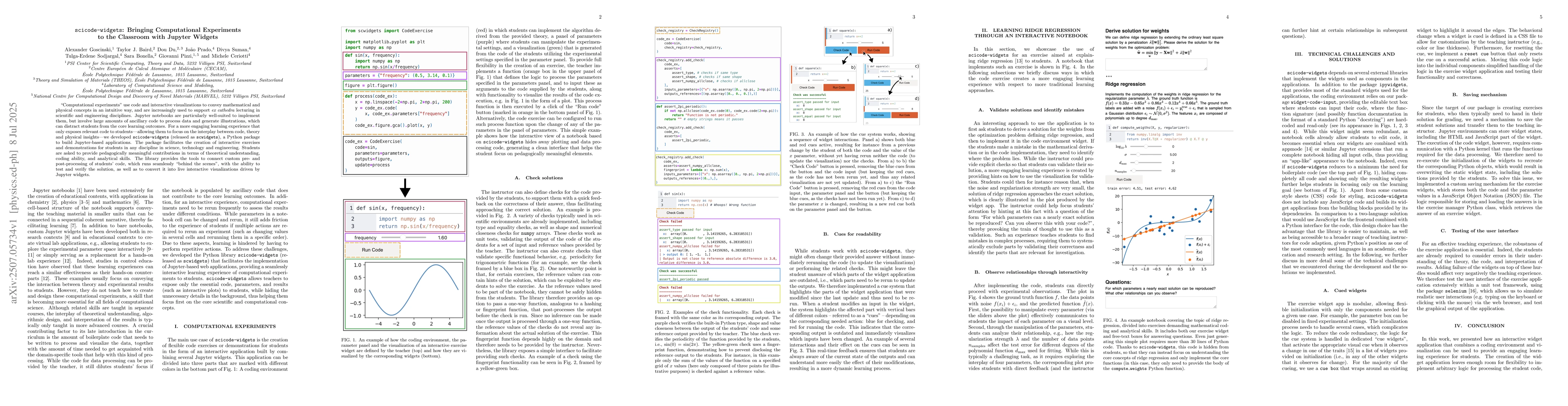 The research developed scicode-widgets, a Python package for creating Jupyter-based applications that facilitate the creation of interactive exercises and demonstrations for students in science, technology, and engineering disciplines.