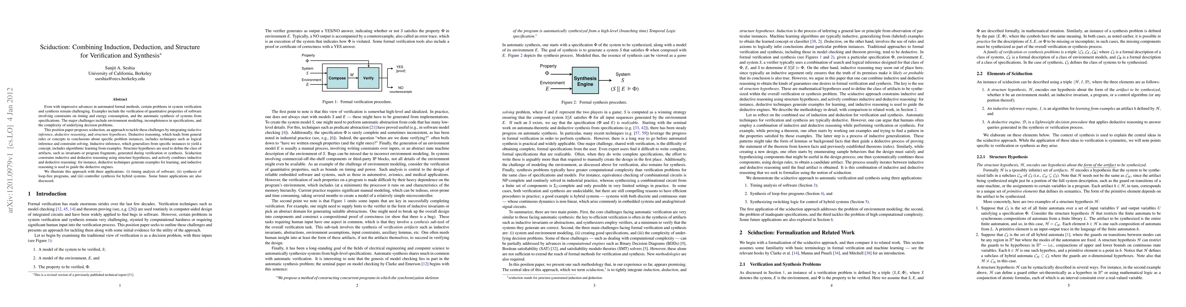 This paper introduces sciduction, an innovative approach combining induction, deduction, and structure hypotheses to address challenges in system verification and synthesis, particularly in timing and energy constraints. Sciduction integrates deductive reasoning and inductive inference to enhance automated formal methods, illustrated through applications like timing analysis, loop-free program synthesis, and hybrid system controllers.