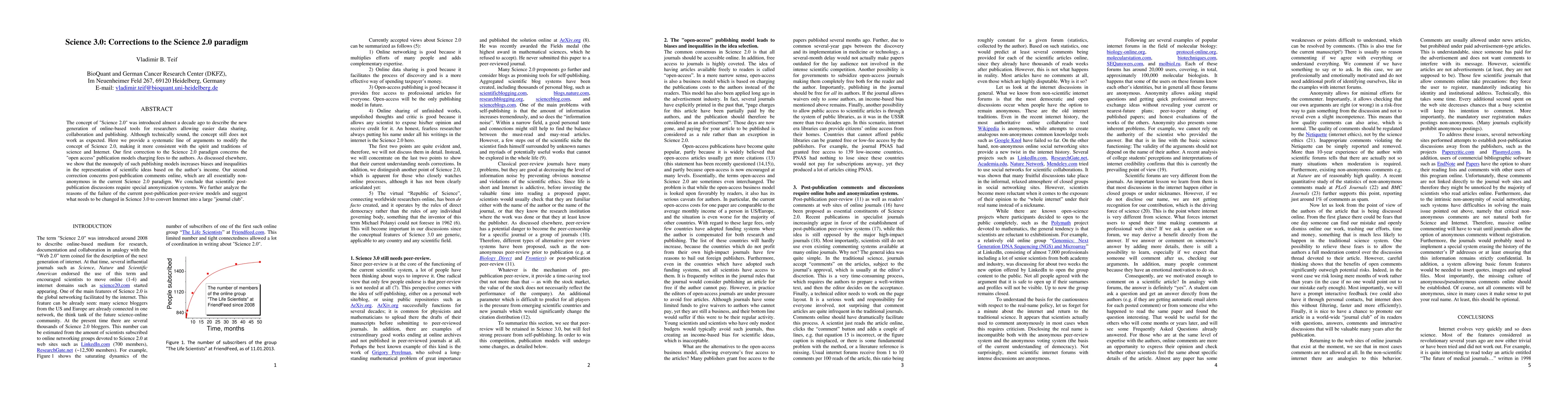The concept of Science 2.0 was introduced almost a decade ago to describe the new generation of online-based tools for researchers allowing easier data sharing, collaboration and publishing. Although technically sound, the concept still does not work as expected. Here we provide a systematic line of arguments to modify the concept of Science 2.0, making it more consistent with the spirit and traditions of science and Internet. Our first correction to the Science 2.0 paradigm concerns the open-access publication models charging fees to the authors. As discussed elsewhere, we show that the monopoly of such publishing models increases biases and inequalities in the representation of scientific ideas based on the author's income. Our second correction concerns post-publication comments online, which are all essentially non-anonymous in the current Science 2.0 paradigm. We conclude that scientific post-publication discussions require special anonymization systems. We further analyze the reasons of the failure of the current post-publication peer-review models and suggest what needs to be changed in Science 3.0 to convert Internet into a large journal club.