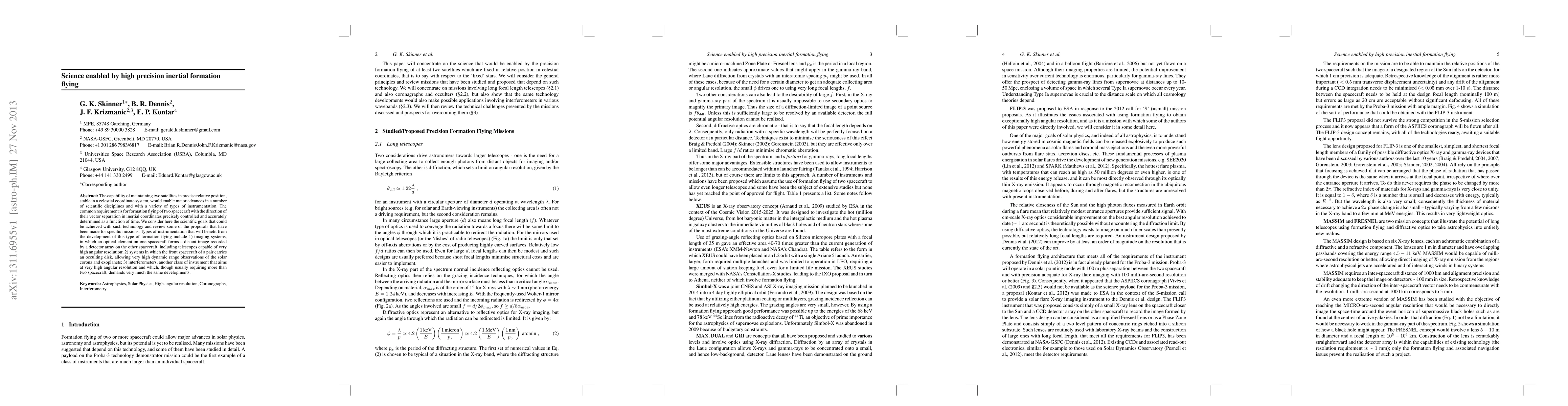 The capability of maintaining two satellites in precise relative position, stable in a celestial coordinate system, would enable major advances in a number of scientific disciplines and with a variety of types of instrumentation. The common requirement is for formation flying of two spacecraft with the direction of their vector separation in inertial coordinates precisely controlled and accurately determined as a function of time. We consider here the scientific goals that could be achieved with such technology and review some of the proposals that have been made for specific missions. Types of instrumentation that will benefit from the development of this type of formation flying include 1) imaging systems, in which an optical element on one spacecraft forms a distant image recorded by a detector array on the other spacecraft, including telescopes capable of very high angular resolution; 2) systems in which the front spacecraft of a pair carries an occulting disk, allowing very high dynamic range observations of the solar corona and exoplanets; 3) interferometers, another class of instrument that aims at very high angular resolution and which, though usually requiring more than two spacecraft, demands very much the same developments.