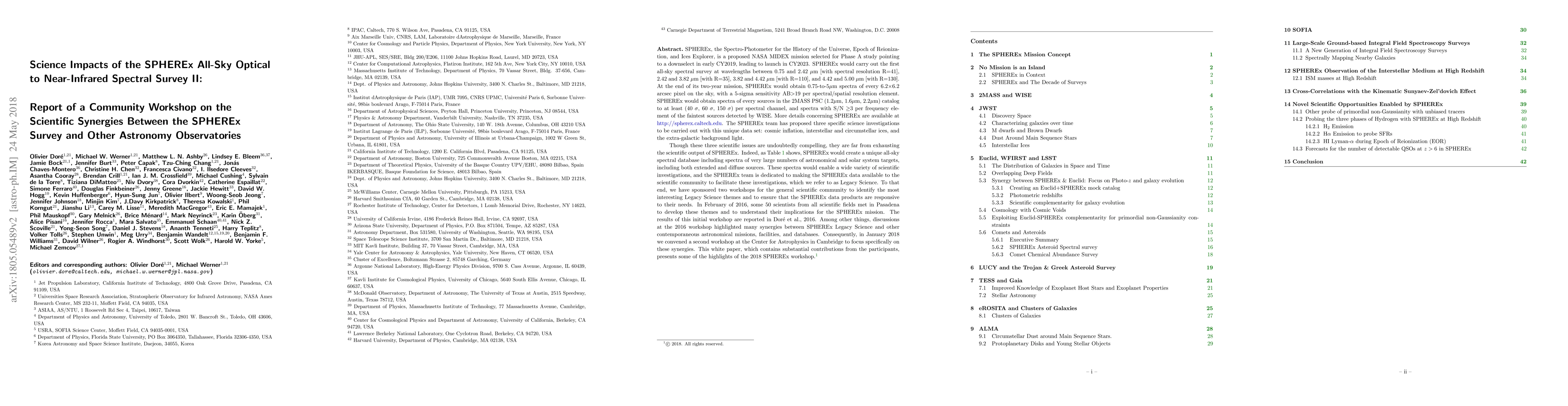 A community workshop identified potential scientific synergies between the SPHEREx mission's near-infrared survey and other astronomy observatories, highlighting opportunities for collaborative research and data sharing.