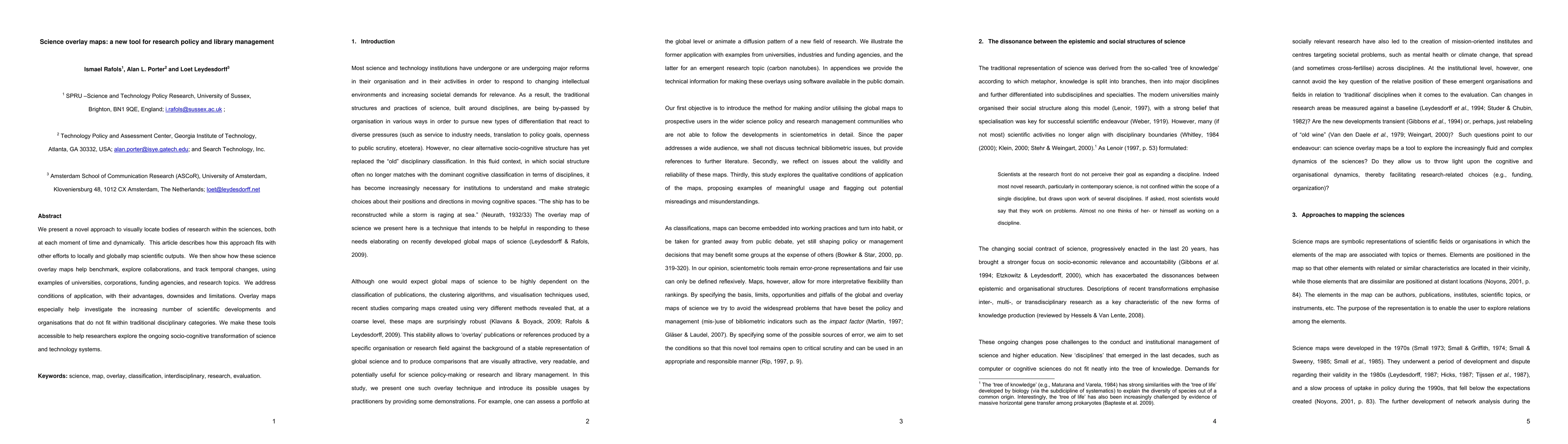 This paper introduces science overlay maps as a new tool for visualizing research bodies and tracking temporal changes, aiding in policy and library management. These maps facilitate benchmarking, collaboration exploration, and the investigation of interdisciplinary scientific developments.