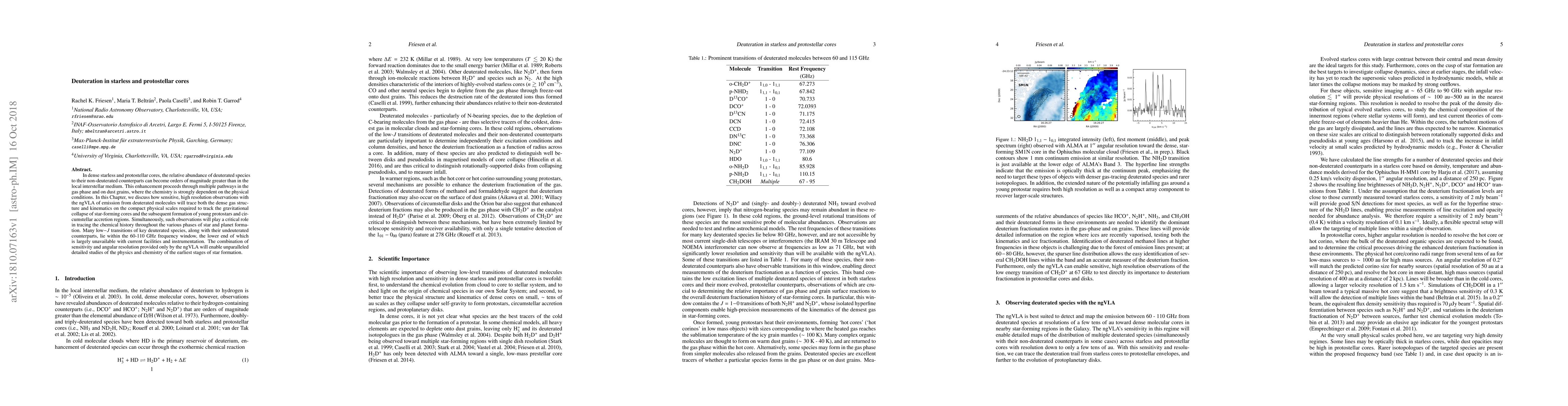 The paper discusses the potential of the next-generation Very Large Array (ngVLA) for studying deuteration in dense starless and prestellar cores. These cores show significantly higher deuterated species abundance than the general interstellar medium. The ngVLA's sensitivity and resolution will allow detailed observations of deuterated molecule emission, revealing gas structure, kinematics, and chemical history during star and planet formation, particularly focusing on the crucial 60-110 GHz frequency window.