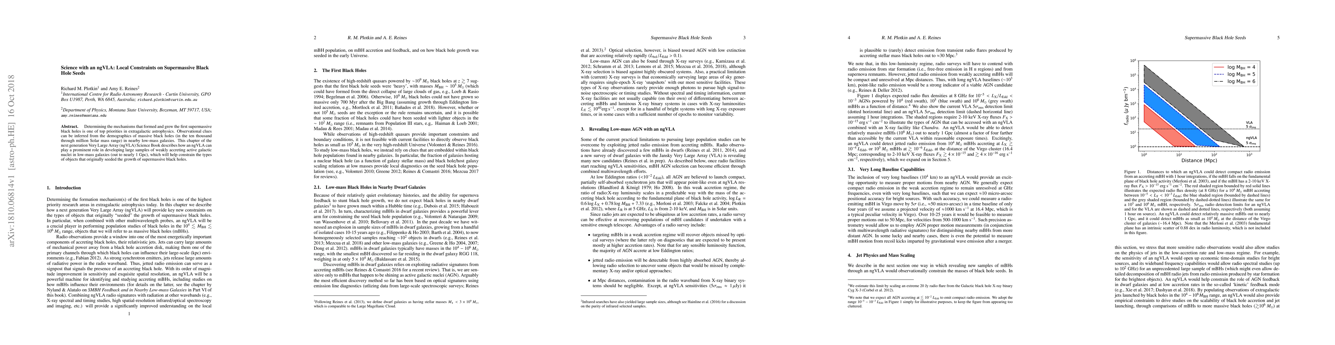 Determining the mechanisms that formed and grew the first supermassive black holes is one of top priorities in extragalactic astrophysics. Observational clues can be inferred from the demographics of massive black holes (in the ten thousand through million Solar mass range) in nearby low-mass galaxies. This chapter of the next generation Very Large Array (ngVLA) Science Book describes how an ngVLA can play a prominent role in developing large samples of weakly accreting active galactic nuclei in low-mass galaxies (out to nearly 1 Gpc), which will help constrain the types of objects that originally seeded the growth of supermassive black holes.