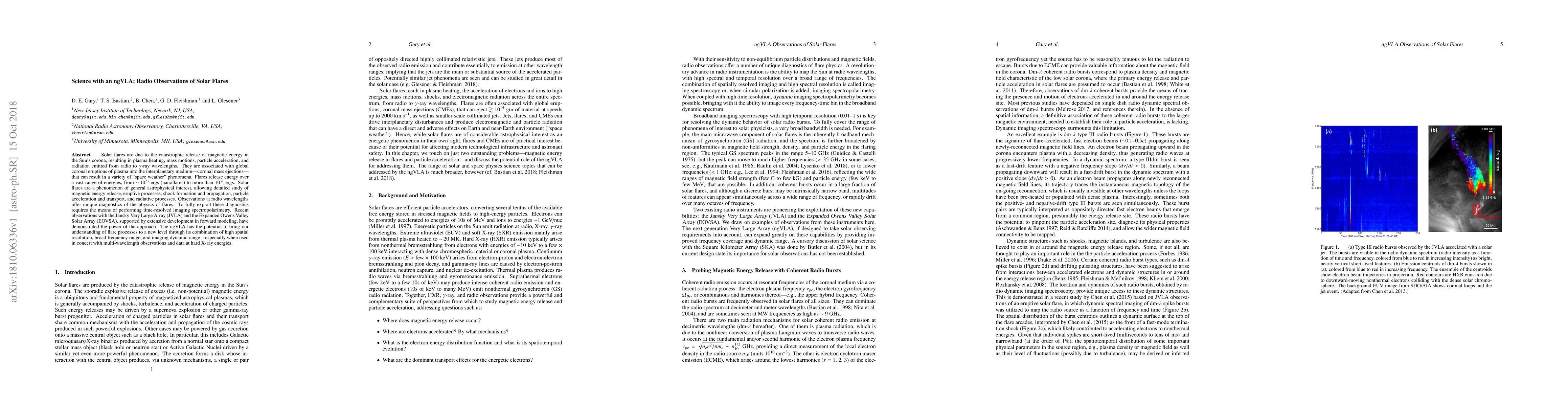 Solar flares are due to the catastrophic release of magnetic energy in the Sun's corona, resulting in plasma heating, mass motions, particle acceleration, and radiation emitted from radio to $\gamma$-ray wavelengths. They are associated with global coronal eruptions of plasma into the interplanetary medium---coronal mass ejections---that can result in a variety of "space weather" phenomena. Flares release energy over a vast range of energies, from $\sim\!10^{23}$ ergs (nanoflares) to more than $10^{32}$ ergs. Solar flares are a phenomenon of general astrophysical interest, allowing detailed study of magnetic energy release, eruptive processes, shock formation and propagation, particle acceleration and transport, and radiative processes. Observations at radio wavelengths offer unique diagnostics of the physics of flares. To fully exploit these diagnostics requires the means of performing time-resolved imaging spectropolarimetry. Recent observations with the Jansky Very Large Array (JVLA) and the Expanded Owens Valley Solar Array (EOVSA), supported by extensive development in forward modeling, have demonstrated the power of the approach. The ngVLA has the potential to bring our understanding of flare processes to a new level through its combination of high spatial resolution, broad frequency range, and imaging dynamic range---especially when used in concert with multi-wavelength observations and data at hard X-ray energies.