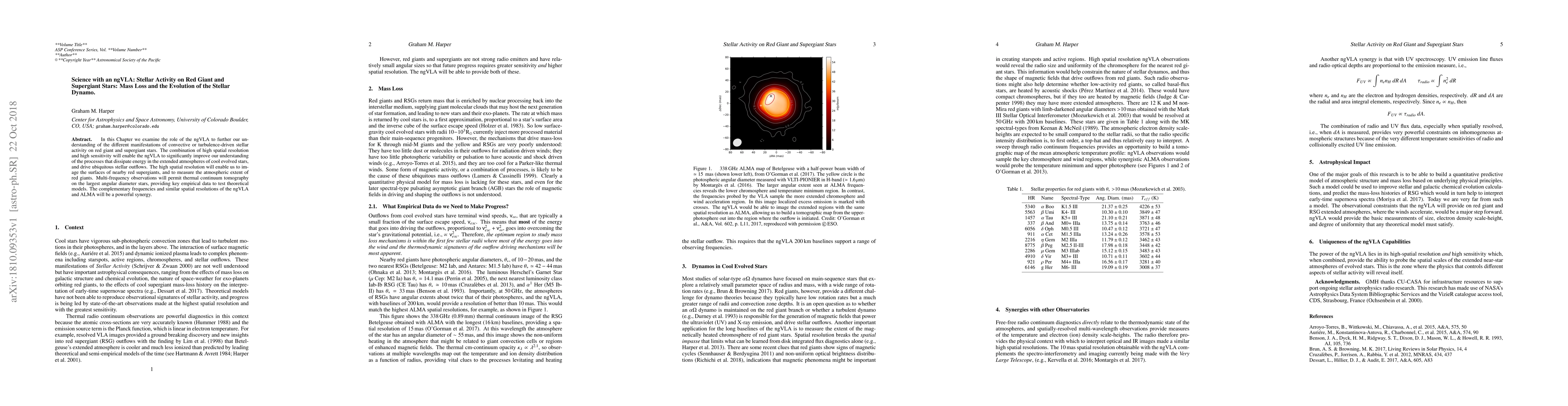 In this Chapter we examine the role of the ngVLA to further our understanding of the different manifestations of convective or turbulence-driven stellar activity on red giant and supergiant stars. The combination of high spatial resolution and high sensitivity will enable the ngVLA to significantly improve our understanding of the processes that dissipate energy in the extended atmospheres of cool evolved stars, and drive ubiquitous stellar outflows. The high spatial resolution will enable us to image the surfaces of nearby red supergiants, and to measure the atmospheric extent of red giants. Multi-frequency observations will permit thermal continuum tomography on the largest angular diameter stars, providing key empirical data to test theoretical models. The complementary frequencies and similar spatial resolutions of the ngVLA and ALMA will be a powerful synergy.