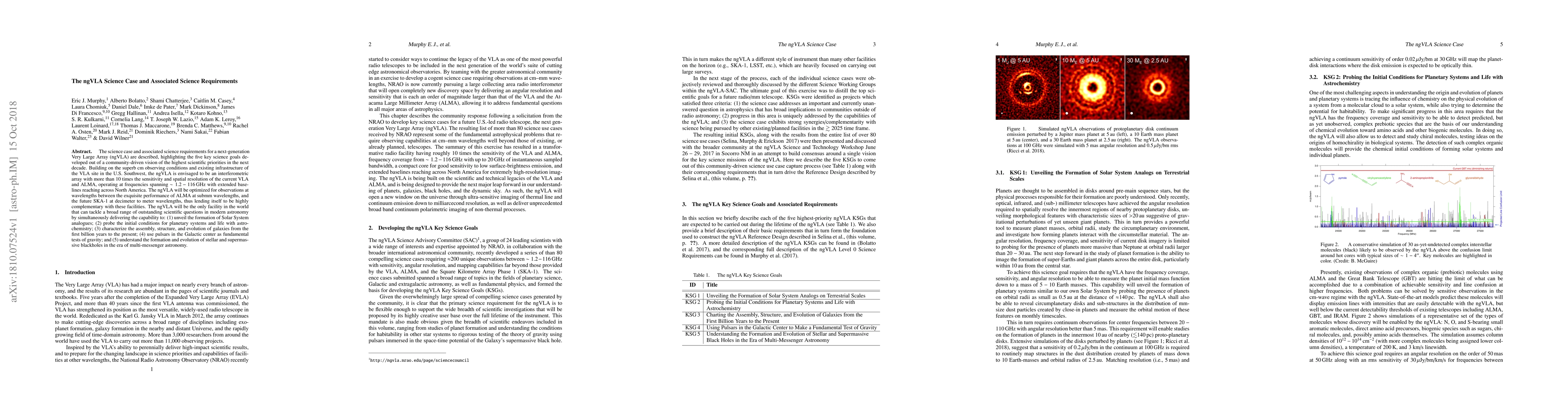 The ngVLA is envisioned to be an interferometric array with significantly enhanced sensitivity and resolution, addressing key scientific goals in modern astronomy, including the formation of planetary systems, galaxy evolution, and the study of black holes. The ngVLA will complement existing facilities like ALMA and SKA-1, offering unique capabilities across a wide frequency range.