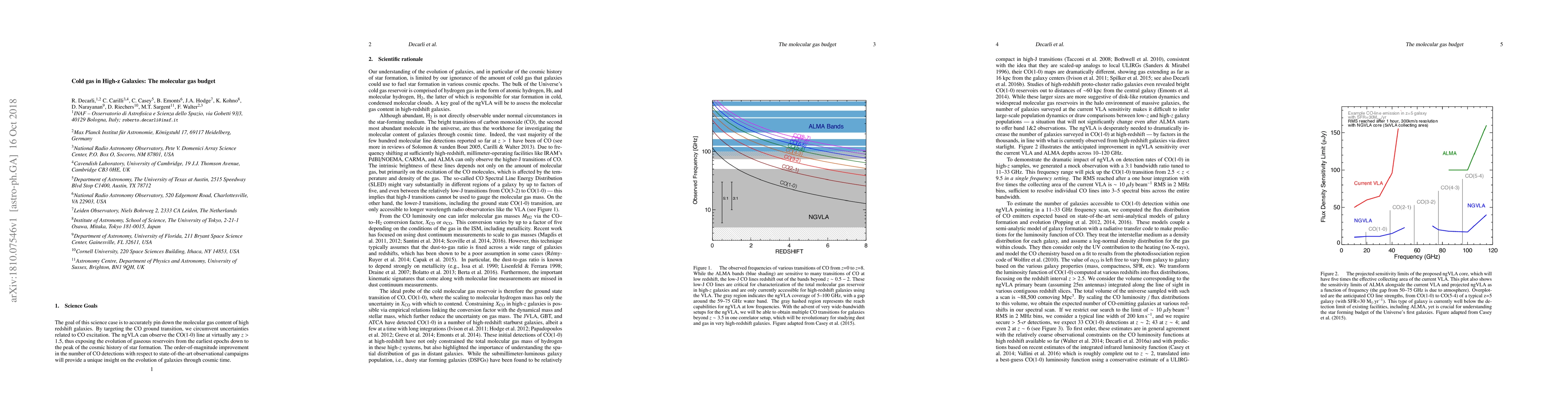 This paper explores using the ngVLA to accurately measure the molecular gas in high-redshift galaxies by targeting the CO(1-0) line, providing insights into the evolution of gaseous reservoirs from early cosmic epochs to the peak of star formation history. The study aims to significantly improve CO detections over current methods.