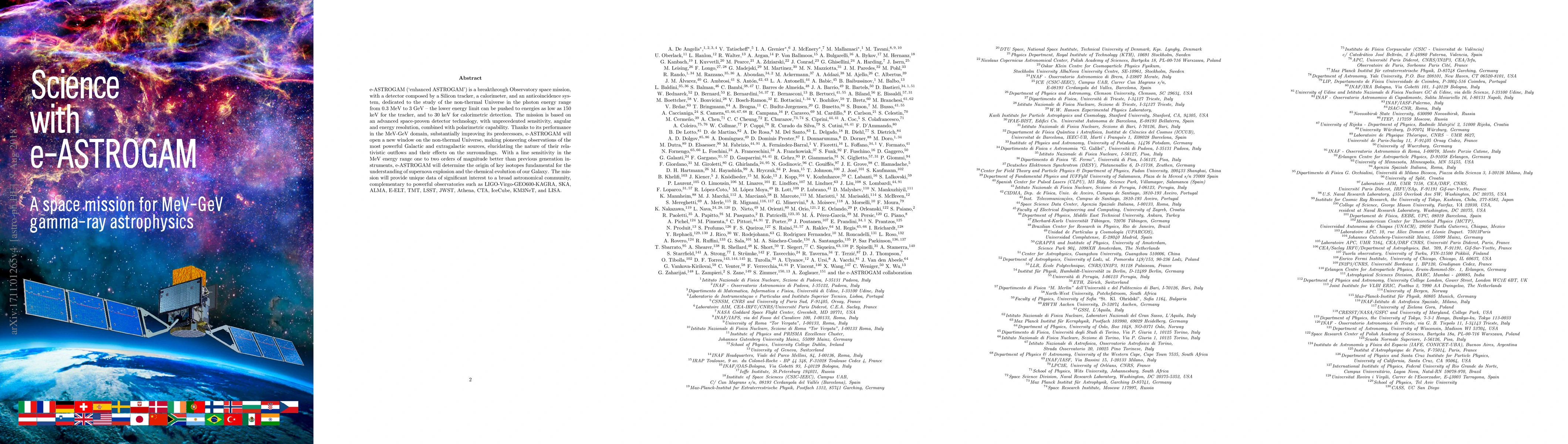 e-ASTROGAM (enhanced ASTROGAM) is a breakthrough Observatory space mission, with a detector composed by a Silicon tracker, a calorimeter, and an anticoincidence system, dedicated to the study of the non-thermal Universe in the photon energy range from 0.3 MeV to 3 GeV - the lower energy limit can be pushed to energies as low as 150 keV for the tracker, and to 30 keV for calorimetric detection. The mission is based on an advanced space-proven detector technology, with unprecedented sensitivity, angular and energy resolution, combined with polarimetric capability. Thanks to its performance in the MeV-GeV domain, substantially improving its predecessors, e-ASTROGAM will open a new window on the non-thermal Universe, making pioneering observations of the most powerful Galactic and extragalactic sources, elucidating the nature of their relativistic outflows and their effects on the surroundings. With a line sensitivity in the MeV energy range one to two orders of magnitude better than previous generation instruments, e-ASTROGAM will determine the origin of key isotopes fundamental for the understanding of supernova explosion and the chemical evolution of our Galaxy. The mission will provide unique data of significant interest to a broad astronomical community, complementary to powerful observatories such as LIGO-Virgo-GEO600-KAGRA, SKA, ALMA, E-ELT, TMT, LSST, JWST, Athena, CTA, IceCube, KM3NeT, and LISA.