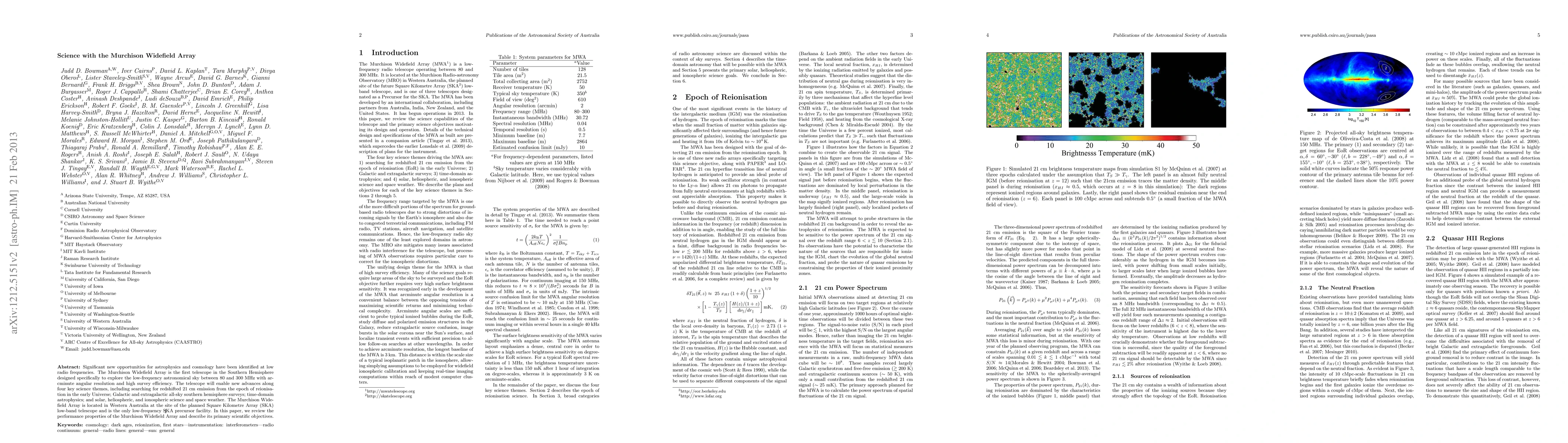 The Murchison Widefield Array (MWA) in Western Australia is designed for low-frequency radio astronomy, enabling advances in astrophysics and cosmology. It aims to explore the early Universe, conduct southern hemisphere sky surveys, study time-domain astrophysics, and investigate space weather.