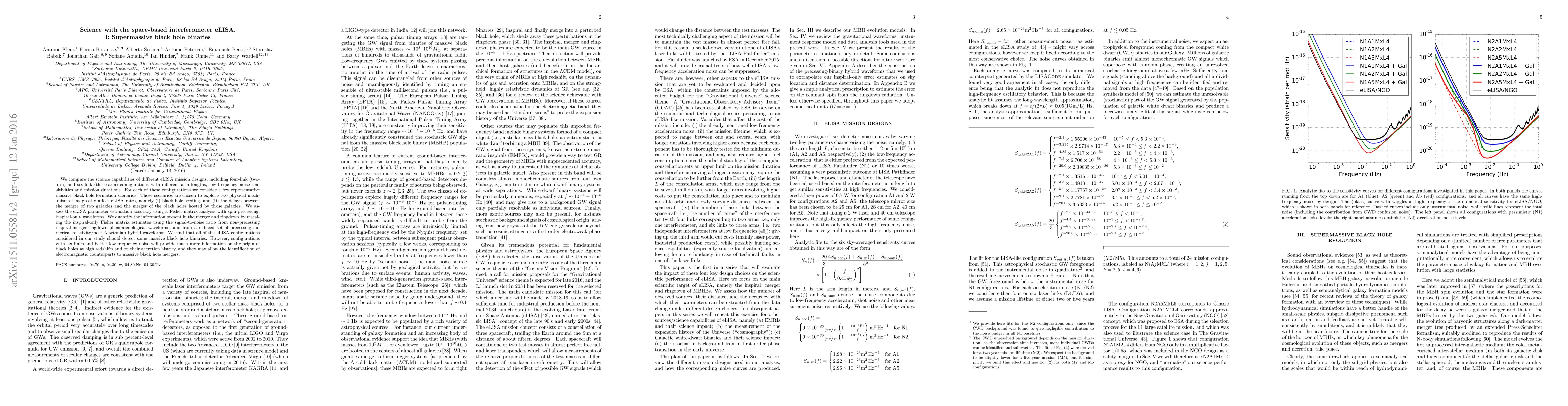 We compare the science capabilities of different eLISA mission designs, including four-link (two-arm) and six-link (three-arm) configurations with different arm lengths, low-frequency noise sensitivities and mission durations. For each of these configurations we consider a few representative massive black hole formation scenarios. These scenarios are chosen to explore two physical mechanisms that greatly affect eLISA rates, namely (i) black hole seeding, and (ii) the delays between the merger of two galaxies and the merger of the black holes hosted by those galaxies. We assess the eLISA parameter estimation accuracy using a Fisher matrix analysis with spin-precessing, inspiral-only waveforms. We quantify the information present in the merger and ringdown by rescaling the inspiral-only Fisher matrix estimates using the signal-to-noise ratio from non-precessing inspiral-merger-ringdown phenomenological waveforms, and from a reduced set of precessing numerical relativity/post-Newtonian hybrid waveforms. We find that all of the eLISA configurations considered in our study should detect some massive black hole binaries. However, configurations with six links and better low-frequency noise will provide much more information on the origin of black holes at high redshifts and on their accretion history, and they may allow the identification of electromagnetic counterparts to massive black hole mergers.