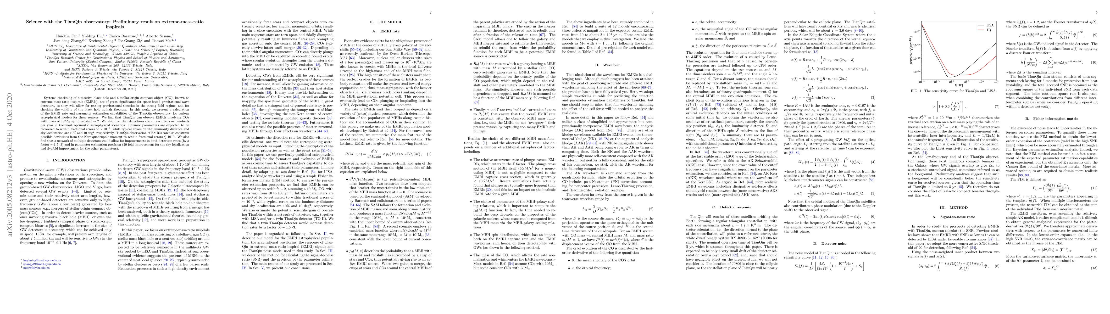 The TianQin observatory is projected to detect extreme-mass-ratio inspirals (EMRIs) involving stellar-origin compact objects up to a redshift of $\sim2$, with detection rates potentially reaching tens to hundreds per year. Parameter estimation is expected to be highly precise, with intrinsic parameters recovered to fractional errors of $\sim 10^{-6}$.