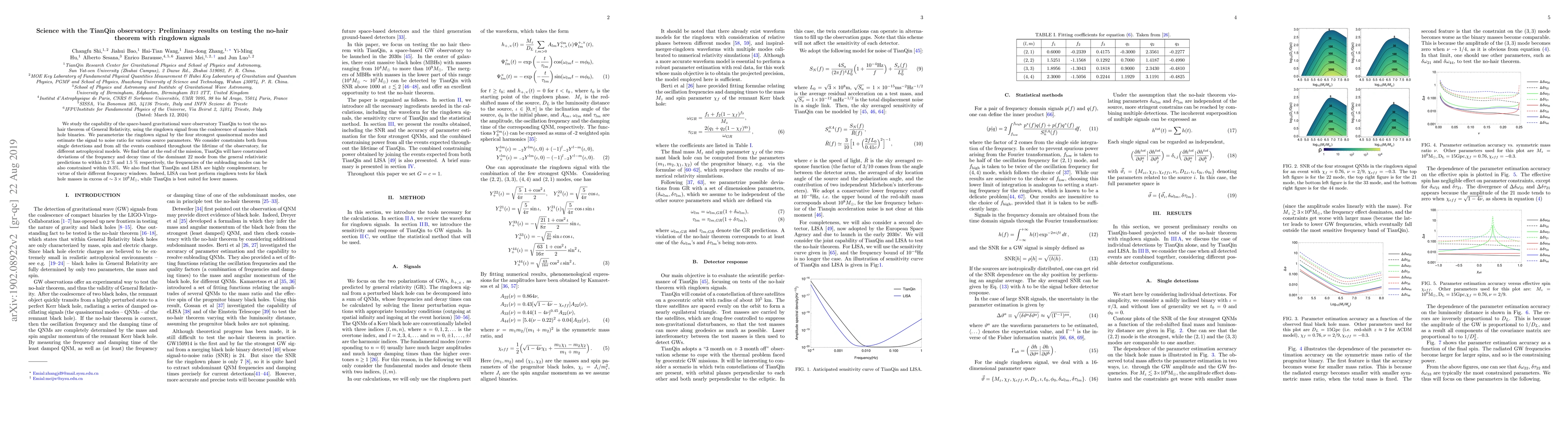 The TianQin observatory is capable of testing the no-hair theorem using ringdown signals from black hole mergers, achieving 0.2% and 1.5% precision in frequency and decay time of the dominant mode, respectively. TianQin and LISA complement each other, with TianQin excelling in lower mass black holes and LISA in higher masses.