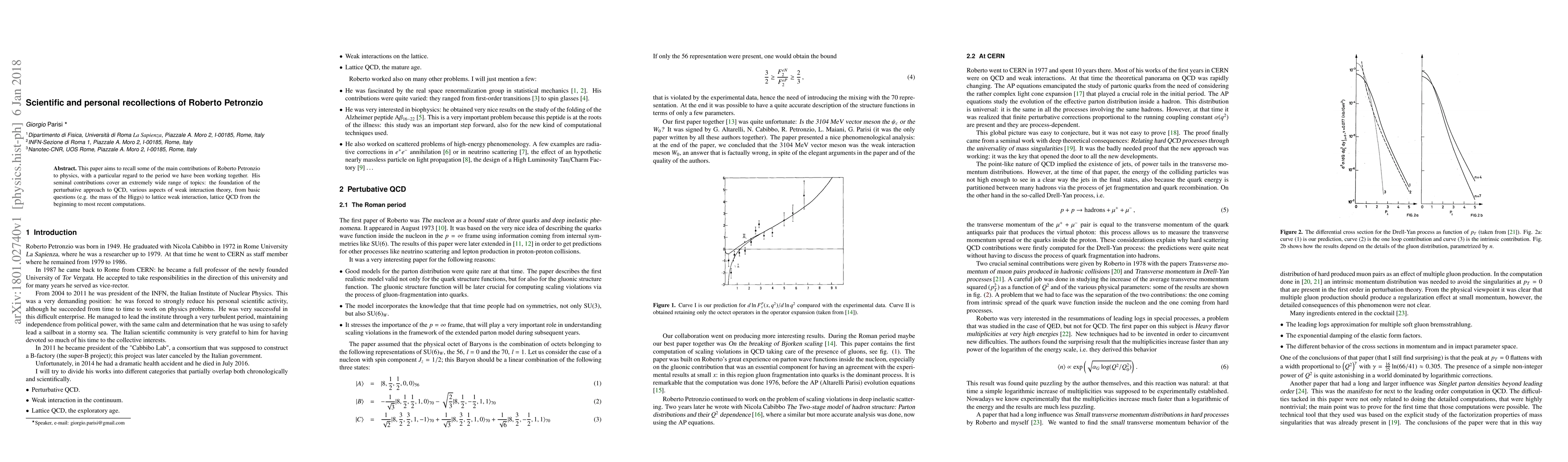 This paper aims to recall some of the main contributions of Roberto Petronzio to physics, with a particular regard to the period we have been working together. His seminal contributions cover an extremely wide range of topics: the foundation of the perturbative approach to QCD, various aspects of weak interaction theory, from basic questions (e.g. the mass of the Higgs) to lattice weak interaction, lattice QCD from the beginning to most recent computations.