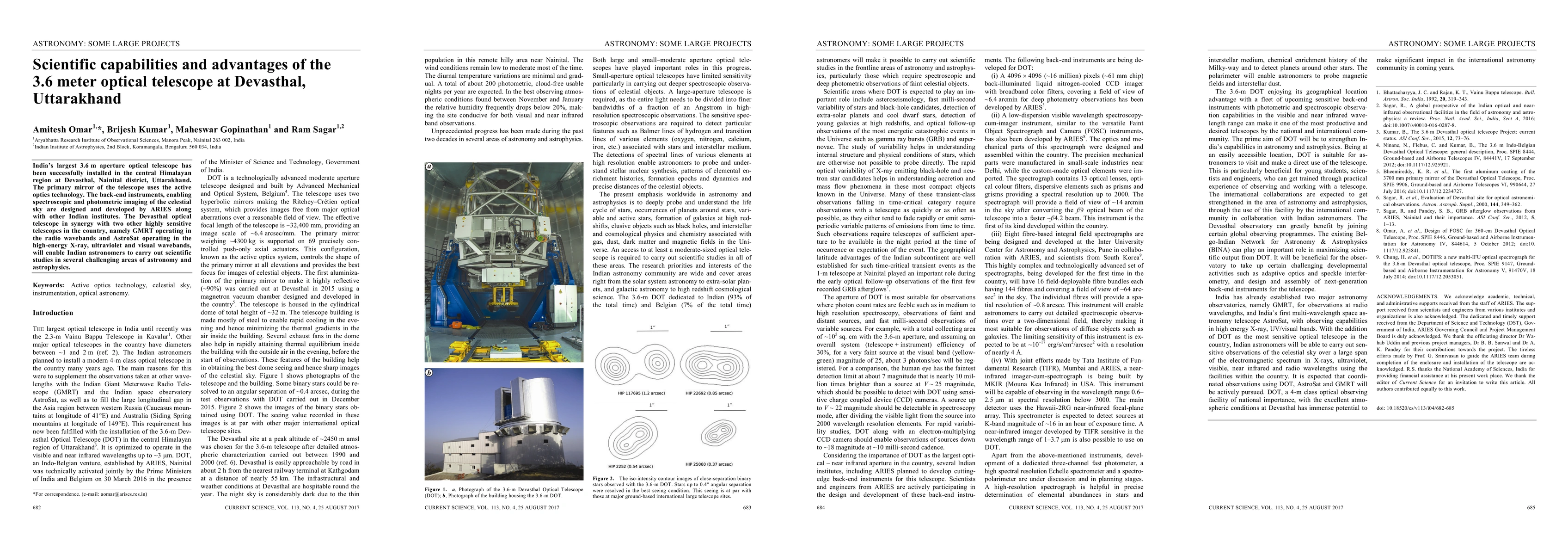 The 3.6 meter optical telescope at Devasthal, Uttarakhand, equipped with active optics and advanced back-end instruments, enhances India's astronomical research capabilities, complementing radio and X-ray telescopes for comprehensive astrophysical studies.