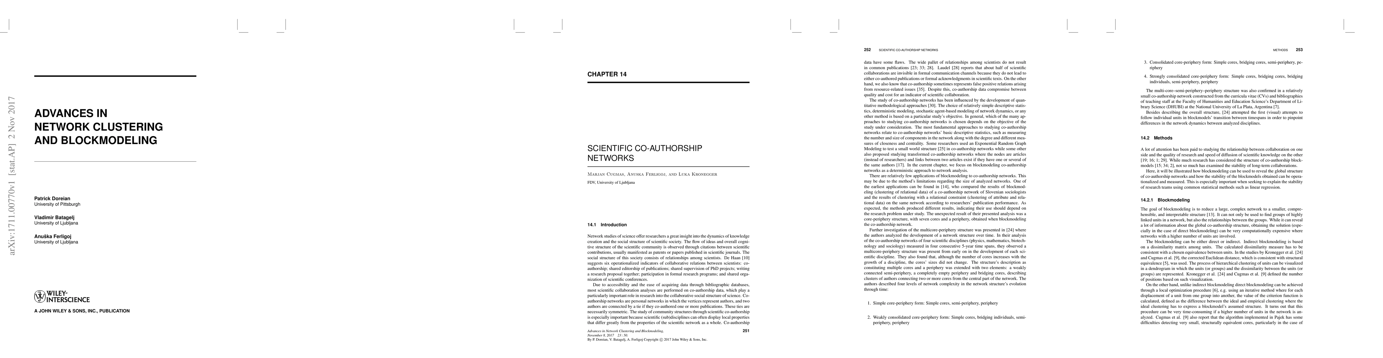 The study analyzed co-authorship networks of Slovenian scientists over four periods from 1990 to 2010 using generalized block modeling.
