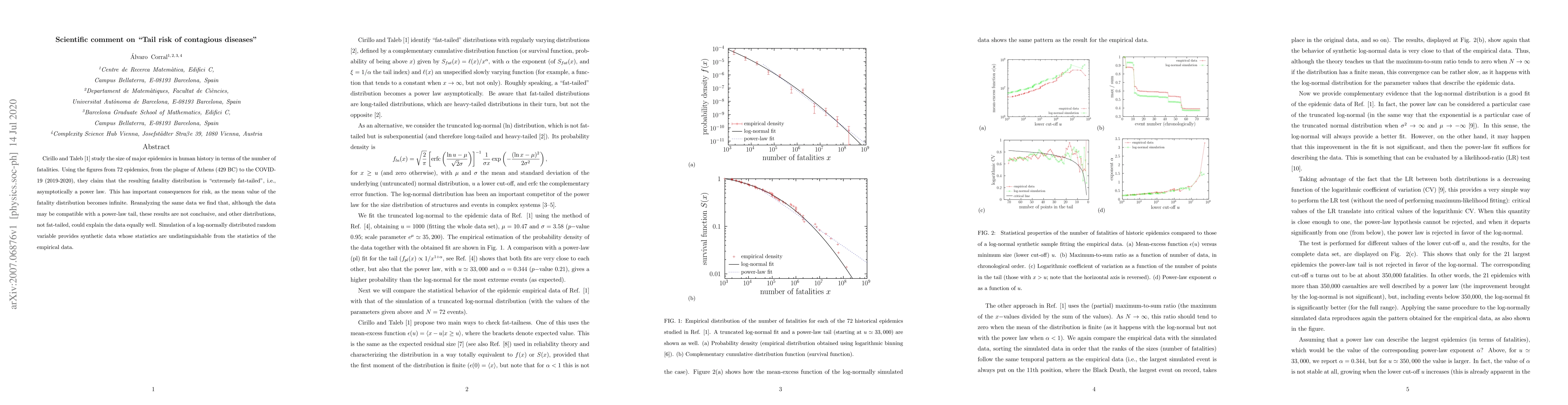 This paper critiques Cirillo and Taleb's analysis of the tail risk in contagious diseases, finding that while their data may suggest a fat-tailed distribution, alternative non-fat-tailed distributions, such as log-normal, can equally well explain the observed fatalities across historical epidemics.