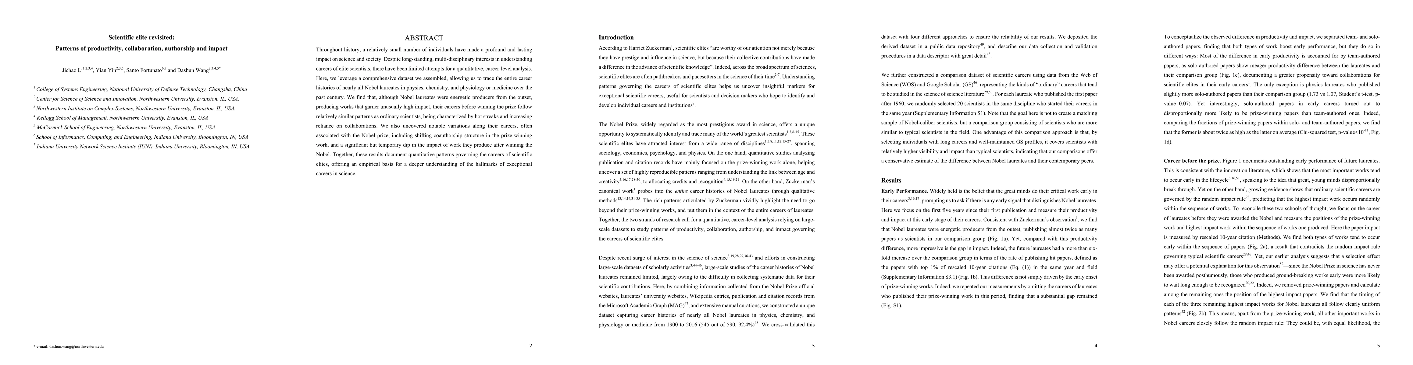 This paper examines the careers of Nobel laureates in physics, chemistry, and physiology or medicine, revealing that their early productivity and collaboration patterns align closely with those of ordinary scientists, despite their later exceptional impact. The study also notes shifts in coauthorship and a temporary dip in post-Nobel impact, providing quantitative insights into the careers of scientific elites.