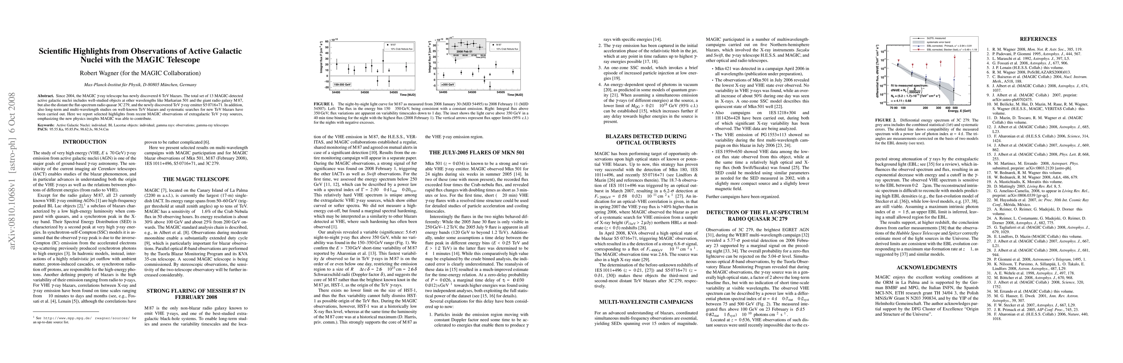 The MAGIC telescope has discovered 13 active galactic nuclei emitting gamma rays at 6 TeV, including new blazars like S5 0716+71, with observations providing insights into the physics of these extreme objects.