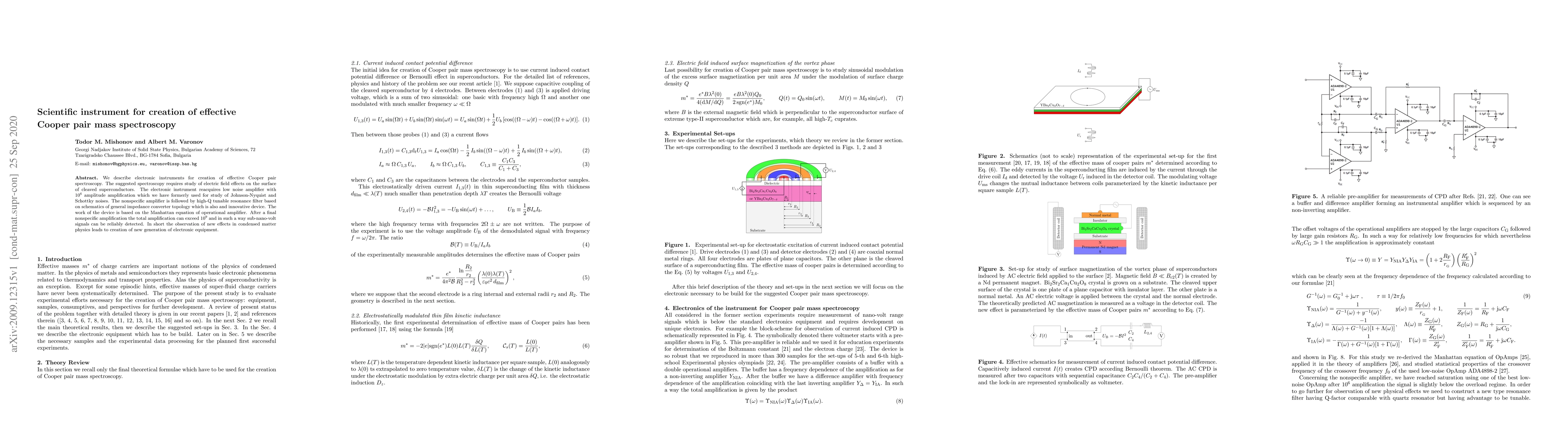 We describe electronic instruments for creation of effective Cooper pair spectroscopy. The suggested spectroscopy requires study of electric field effects on the surface of cleaved superconductors. The electronic instrument reacquires low noise amplifier with 10$^6$ amplitude amplification which we have formerly used for study of Johnson-Nyquist and Schottky noises. The nonspecific amplifier is followed by high-Q tunable resonance filter based on schematics of general impedance converter topology which is also and innovative device. The work of the device is based on the Manhattan equation of operational amplifier. After a final nonspecific amplification the total amplification can exceed 10$^9$ and in such a way sub-nano-volt signals can be reliably detected. In short the observation of new effects in condensed matter physics leads to creation of new generation of electronic equipment.