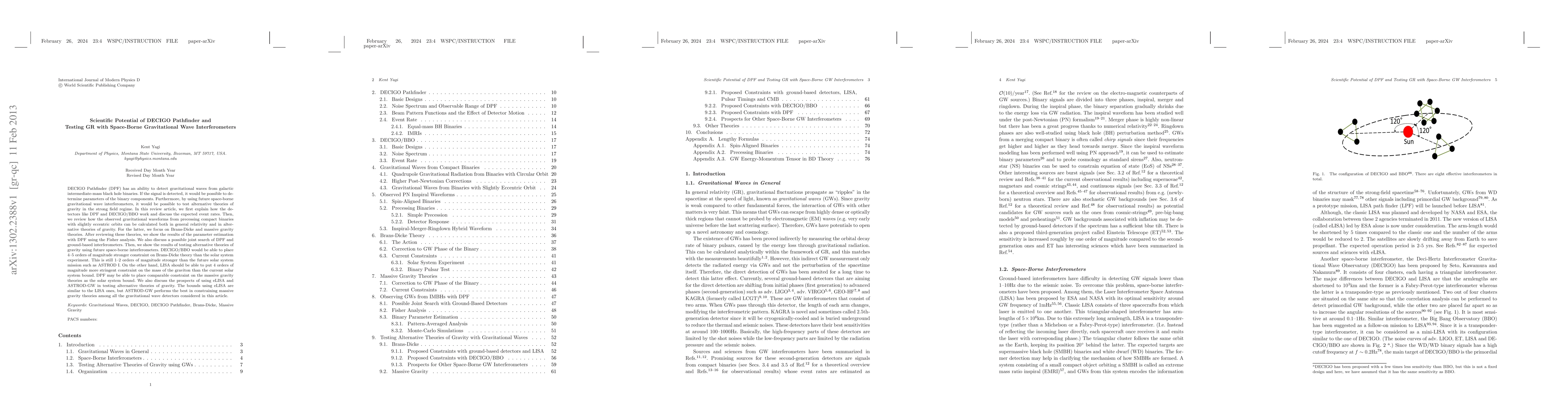 This paper reviews the scientific potential of DECIGO Pathfinder and future space-borne gravitational wave interferometers in detecting gravitational waves from galactic binaries and testing general relativity against alternative theories. It highlights the superior constraints these detectors will place on Brans-Dicke and massive gravity theories compared to current solar system experiments.