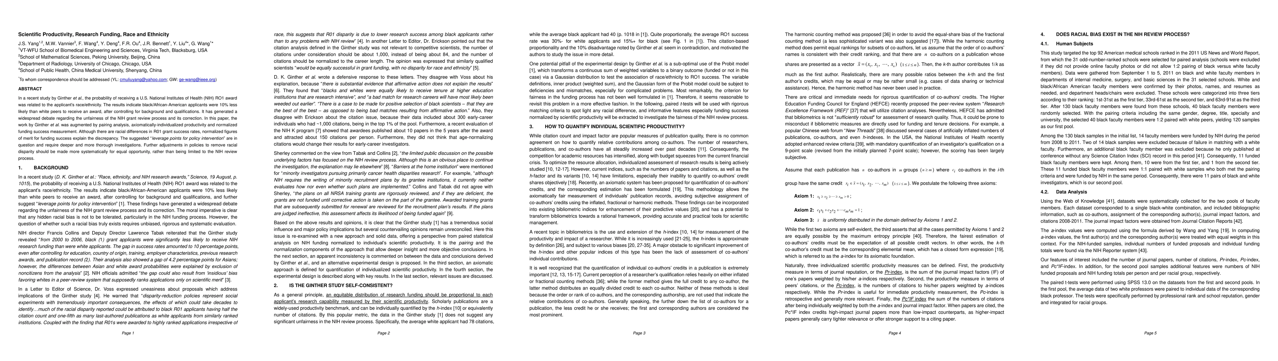 In a recent study by Ginther et al., the probability of receiving a U.S. National Institutes of Health (NIH) RO1 award was related to the applicant's race/ethnicity. The results indicate black/African-American applicants were 10% less likely than white peers to receive an award, after controlling for background and qualifications. It has generated a widespread debate regarding the unfairness of the NIH grant review process and its correction. In this paper, the work by Ginther et al. was augmented by pairing analysis, axiomatically-individualized productivity and normalized funding success measurement. Although there are racial differences in R01 grant success rates, normalized figures of merit for funding success explain the discrepancy. The suggested "leverage points for policy intervention" are in question and require deeper and more thorough investigations. Further adjustments in policies to remove racial disparity should be made more systematically for equal opportunity, rather than being limited to the NIH review process.