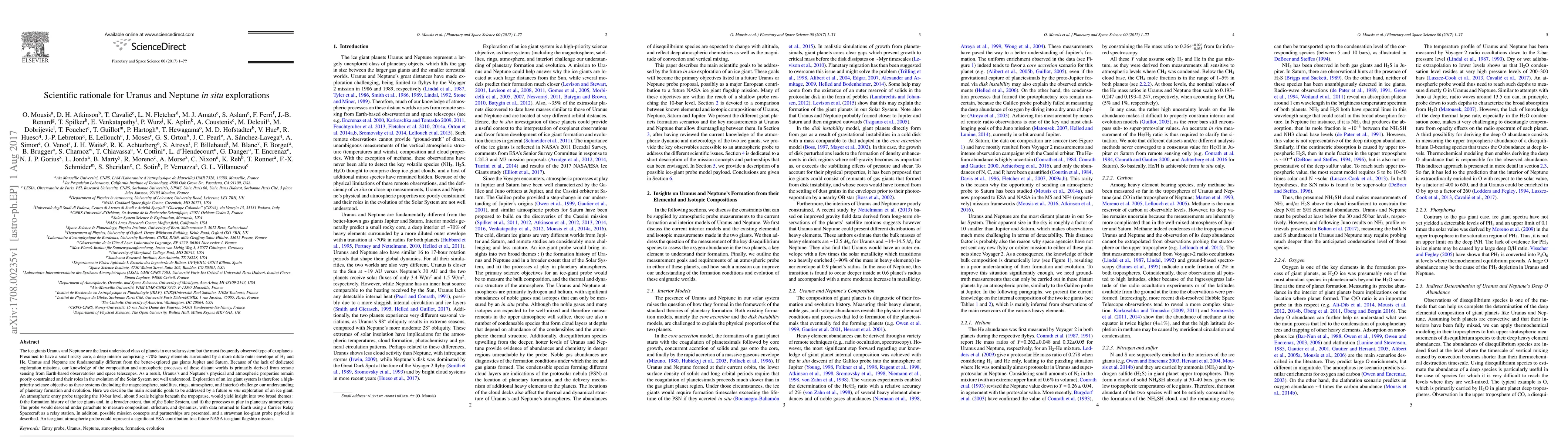 This paper outlines the scientific rationale for in situ exploration of Uranus and Neptune, emphasizing their unique composition and atmospheric processes, which remain poorly understood due to lack of dedicated missions. It proposes an atmospheric probe to investigate their formation history and atmospheric dynamics, suggesting it could significantly enhance our understanding of planetary formation and evolution.