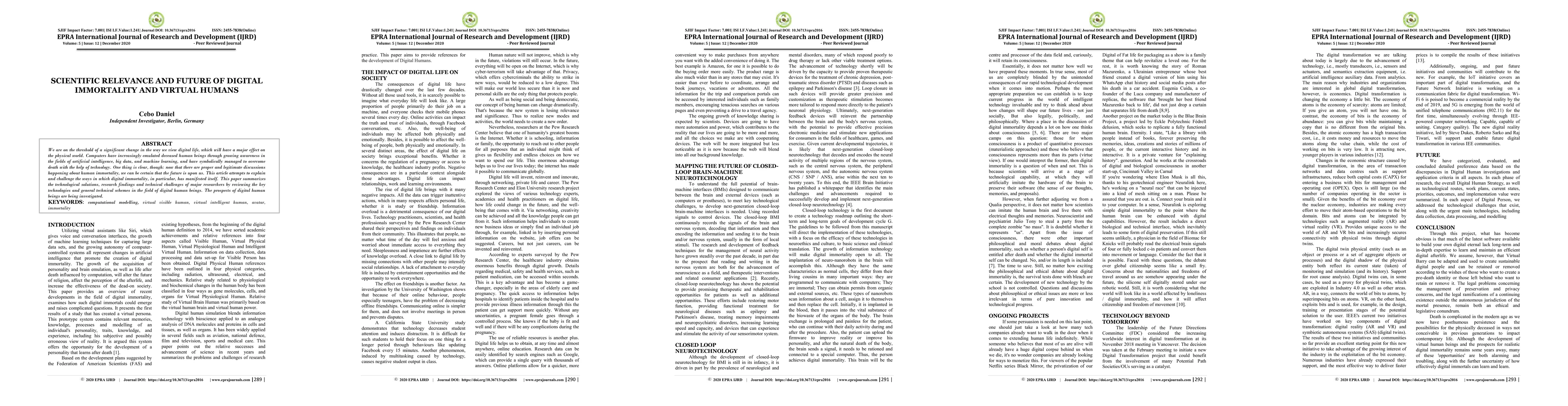 This paper explores the emerging field of digital immortality and virtual humans, summarizing technological advancements and research findings in artificial intelligence, big data, and machine learning. It examines the challenges and potential future of digital human beings, highlighting the profound impact these developments may have on our understanding of life and death.