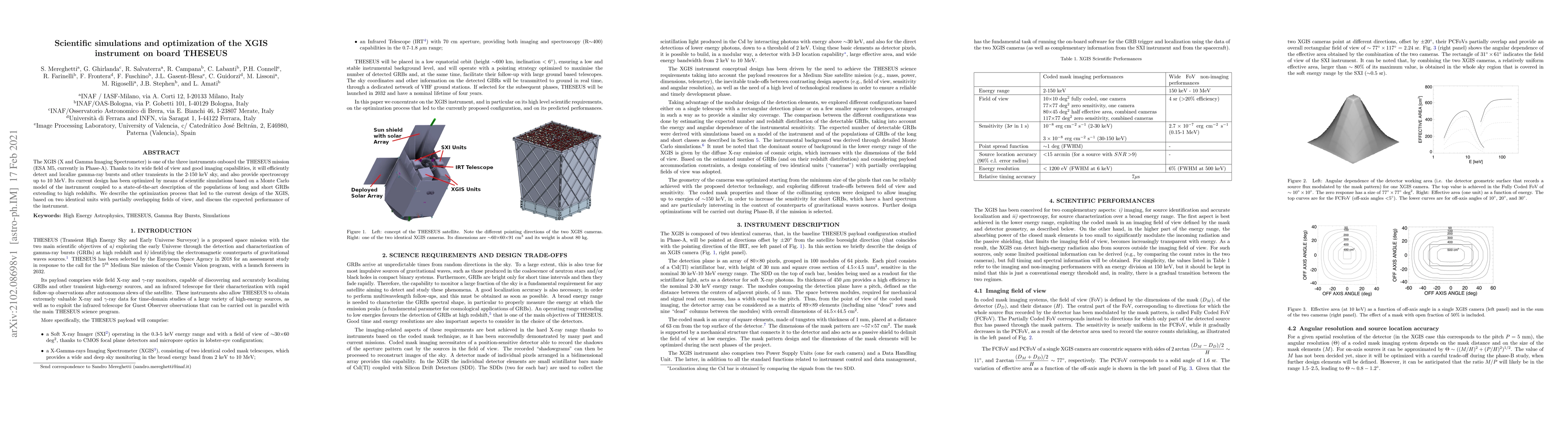 The XGIS instrument on the THESEUS mission has been optimized through scientific simulations using a Monte Carlo model to enhance its detection and localization of gamma-ray bursts and other transients. The current design features two identical units with overlapping fields of view, promising efficient performance in spectroscopy up to 10 MeV.
