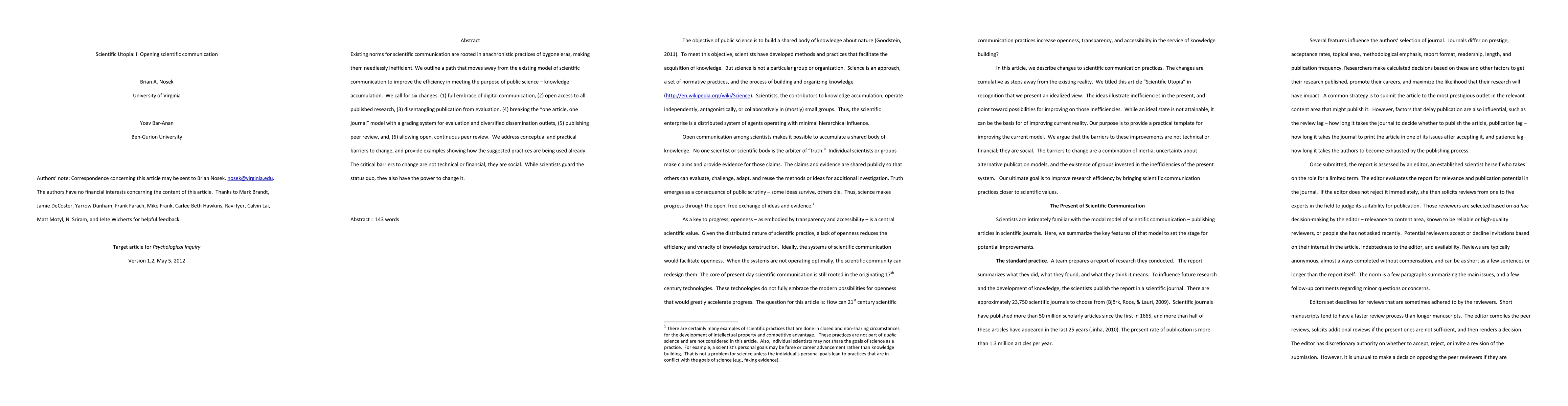 This paper critiques outdated norms in scientific communication and proposes six changes to enhance efficiency: digital communication, open access, separating publication from evaluation, diversified dissemination, publishing peer review, and open continuous peer review. It emphasizes that the main barriers to change are social rather than technical or financial.