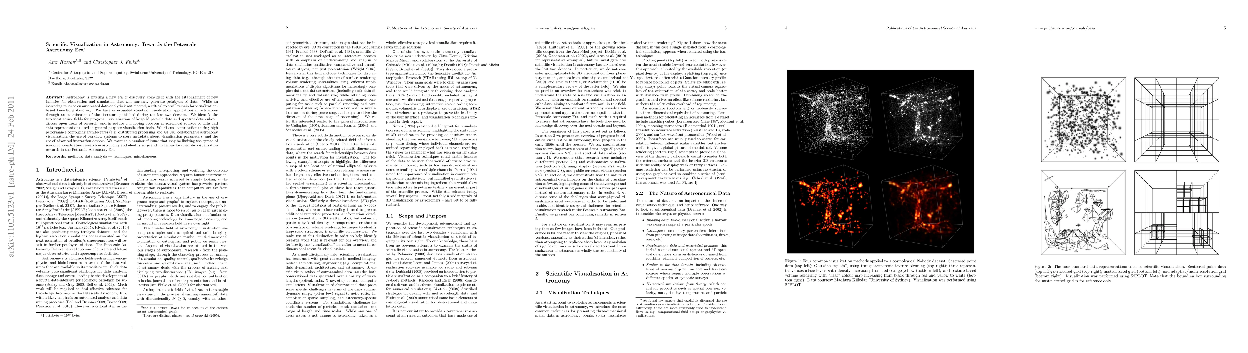 This paper reviews scientific visualization applications in astronomy, highlighting advancements in visualizing large-N particle data and spectral data cubes, and identifies six grand challenges for visualization research as astronomy transitions into the petascale era. It also discusses contributions from high-performance computing and advanced interaction devices.