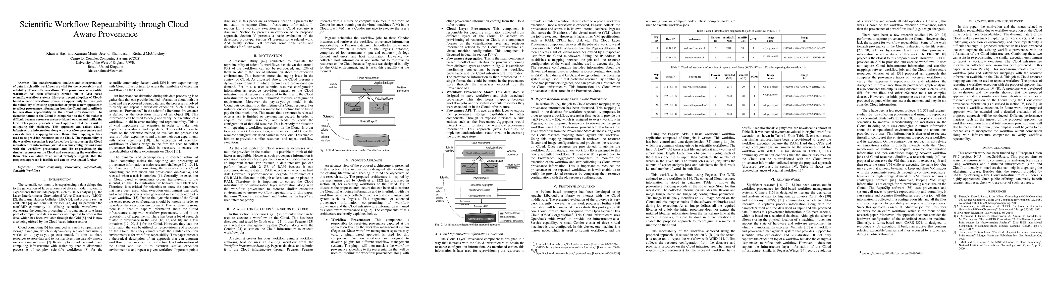 This paper proposes a novel method for ensuring repeatability in scientific workflows deployed in cloud environments by capturing cloud infrastructure information alongside workflow provenance, and using this mapping to re-provision resources and re-execute workflows. Initial prototype evaluation indicates the approach's feasibility.