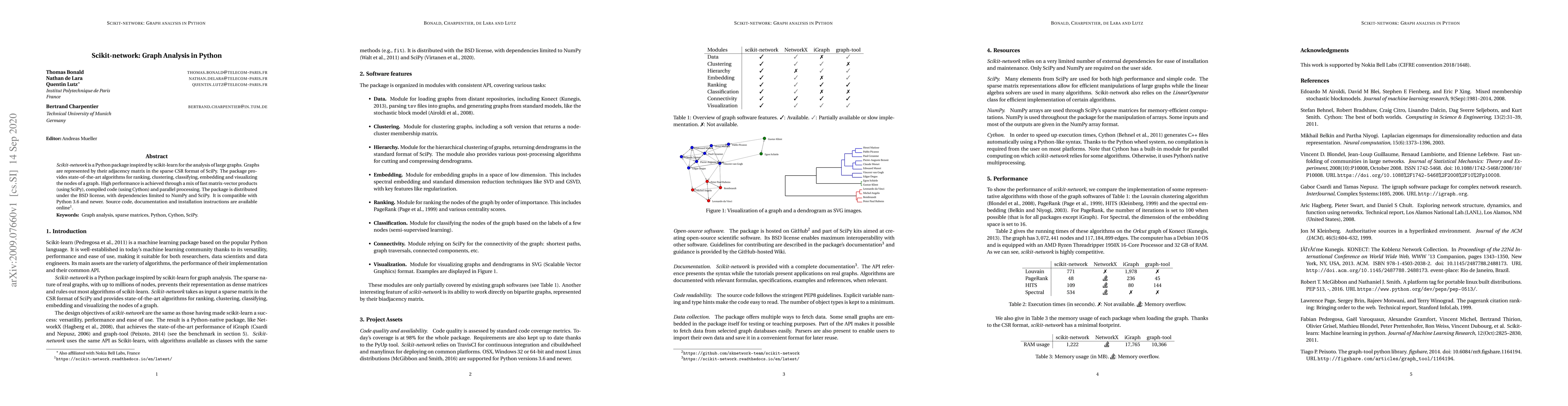 Scikit-network is a Python package for large graph analysis, offering advanced algorithms for ranking, clustering, classifying, embedding, and visualizing graph nodes. It leverages efficient matrix operations, Cython for compiled code, and parallel processing for high performance.