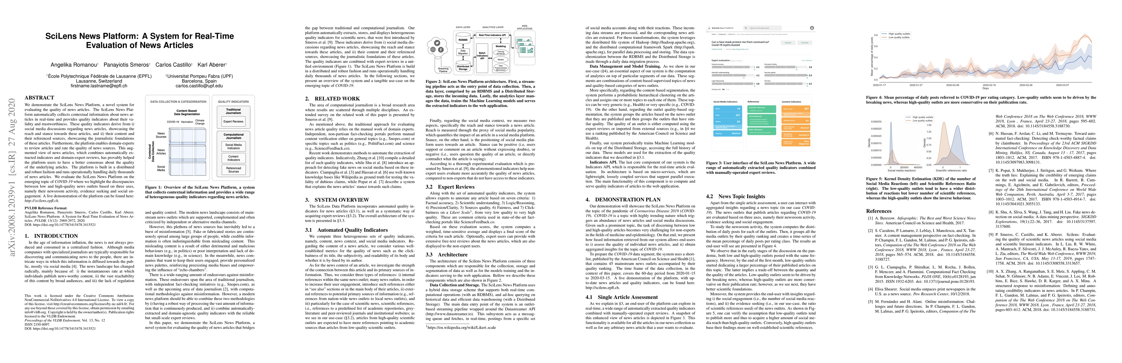 The SciLens News Platform evaluates news articles' quality by combining real-time contextual information from social media and content analysis, supplemented by expert reviews, to provide validity and trustworthiness indicators. The platform demonstrates improved consensus among users on article quality, particularly evident in its COVID-19 coverage.