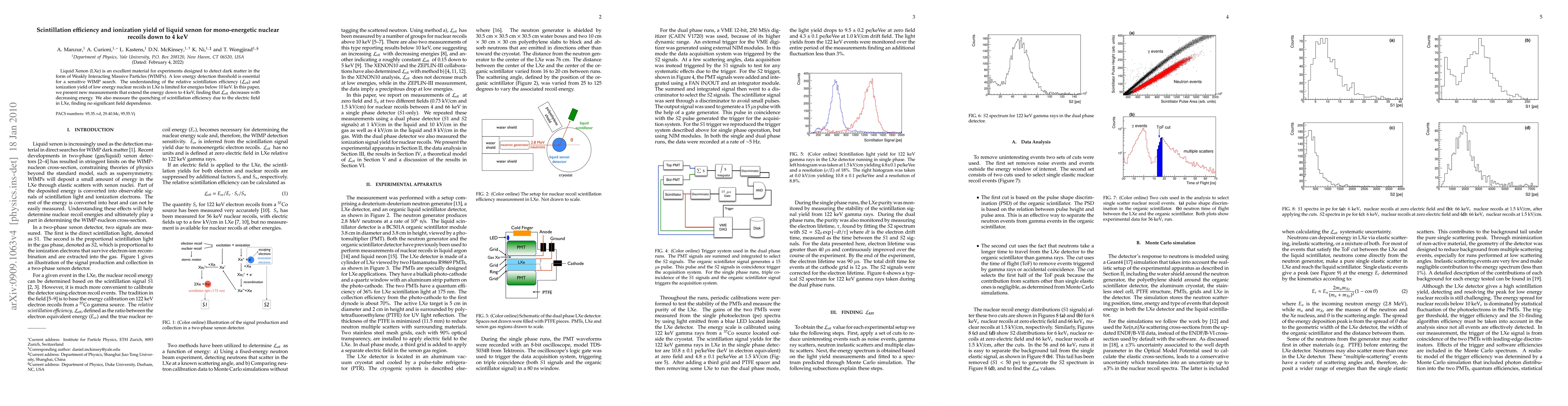 This paper reports new measurements of scintillation efficiency and ionization yield in liquid xenon for nuclear recoils down to 4 keV, revealing a decrease in efficiency with lower energy and no significant field dependence. These findings are crucial for enhancing the sensitivity of dark matter detection experiments.