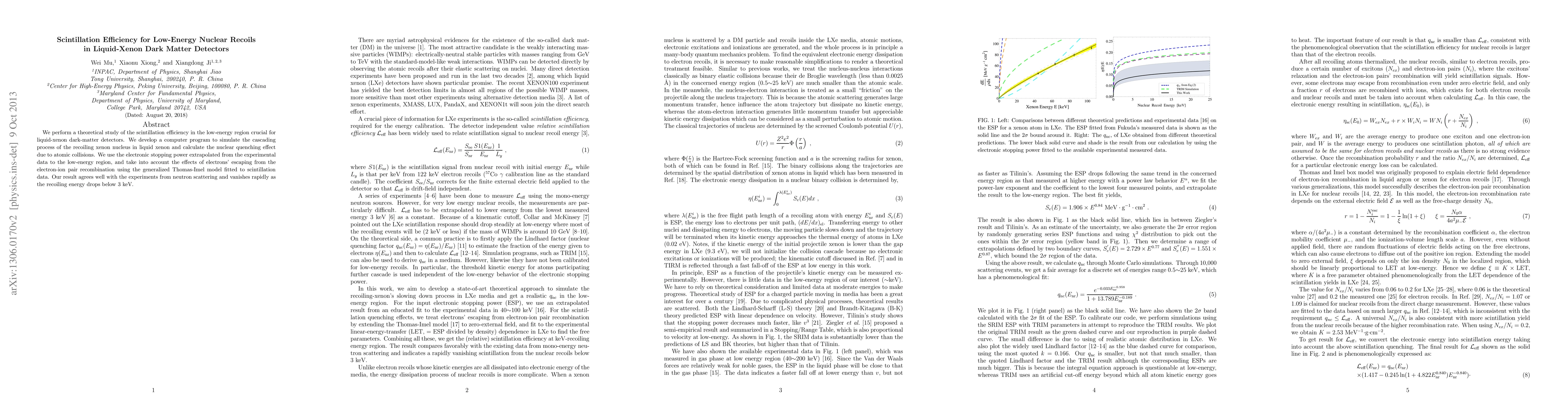 This paper theoretically investigates scintillation efficiency in liquid-xenon detectors for low-energy nuclear recoils, crucial for dark matter detection. The study employs a computer program to simulate the recoiling xenon nucleus and calculates nuclear quenching effects, agreeing with experimental data and showing a rapid decline in efficiency below 3 keV.