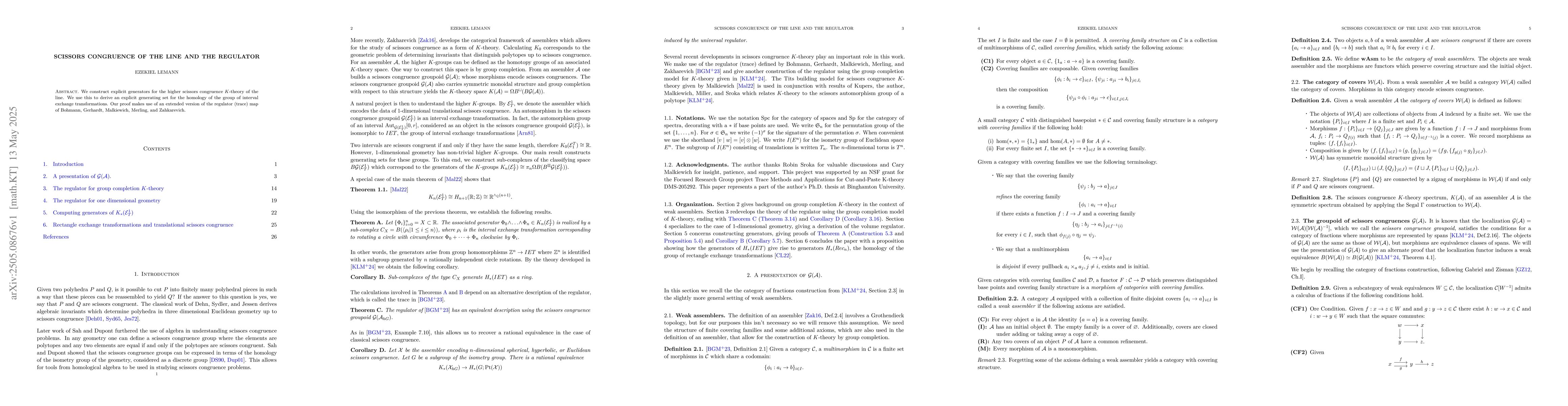 Researchers developed explicit generators for higher scissors congruence K-theory of the line, leading to a new generating set for interval exchange transformation homology, leveraging an extended regulator map.