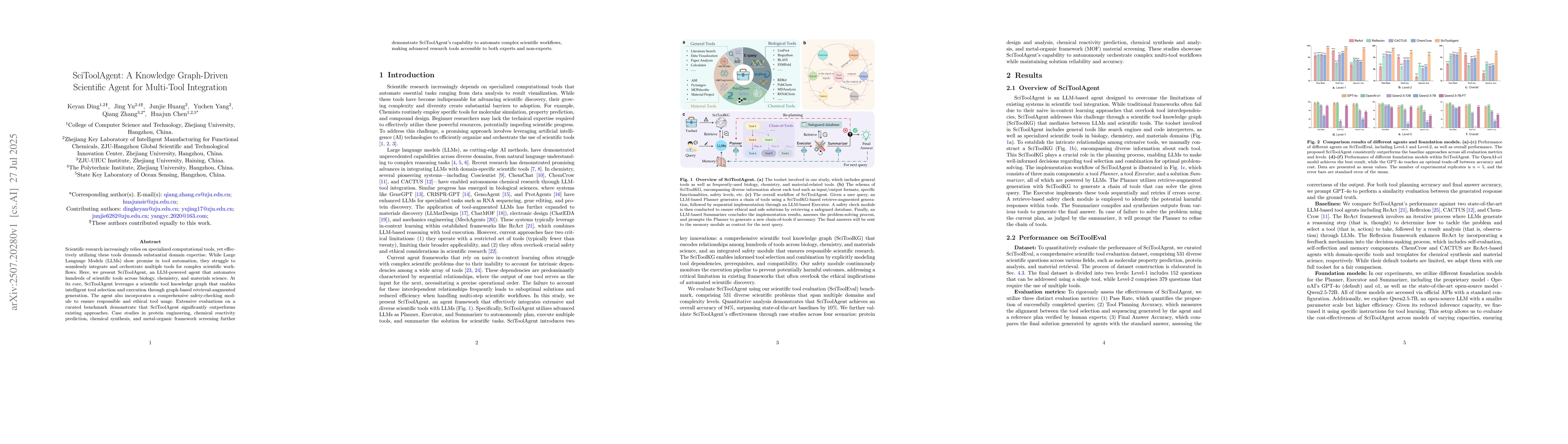 Scientific research increasingly relies on specialized computational tools, yet effectively utilizing these tools demands substantial domain expertise. While Large Language Models (LLMs) show promise in tool automation, they struggle to seamlessly integrate and orchestrate multiple tools for complex scientific workflows. Here, we present SciToolAgent, an LLM-powered agent that automates hundreds of scientific tools across biology, chemistry, and materials science. At its core, SciToolAgent leverages a scientific tool knowledge graph that enables intelligent tool selection and execution through graph-based retrieval-augmented generation. The agent also incorporates a comprehensive safety-checking module to ensure responsible and ethical tool usage. Extensive evaluations on a curated benchmark demonstrate that SciToolAgent significantly outperforms existing approaches. Case studies in protein engineering, chemical reactivity prediction, chemical synthesis, and metal-organic framework screening further demonstrate SciToolAgent's capability to automate complex scientific workflows, making advanced research tools accessible to both experts and non-experts.