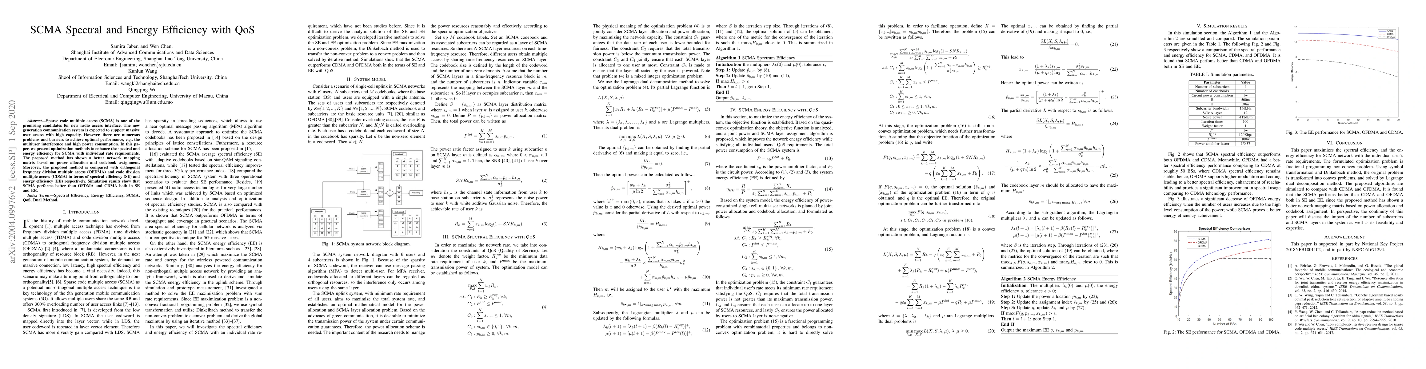 This paper proposes optimization methods to enhance spectral and energy efficiency for SCMA, addressing multiuser interference and high power consumption. Simulation results demonstrate that SCMA outperforms OFDMA and CDMA in both spectral and energy efficiency.