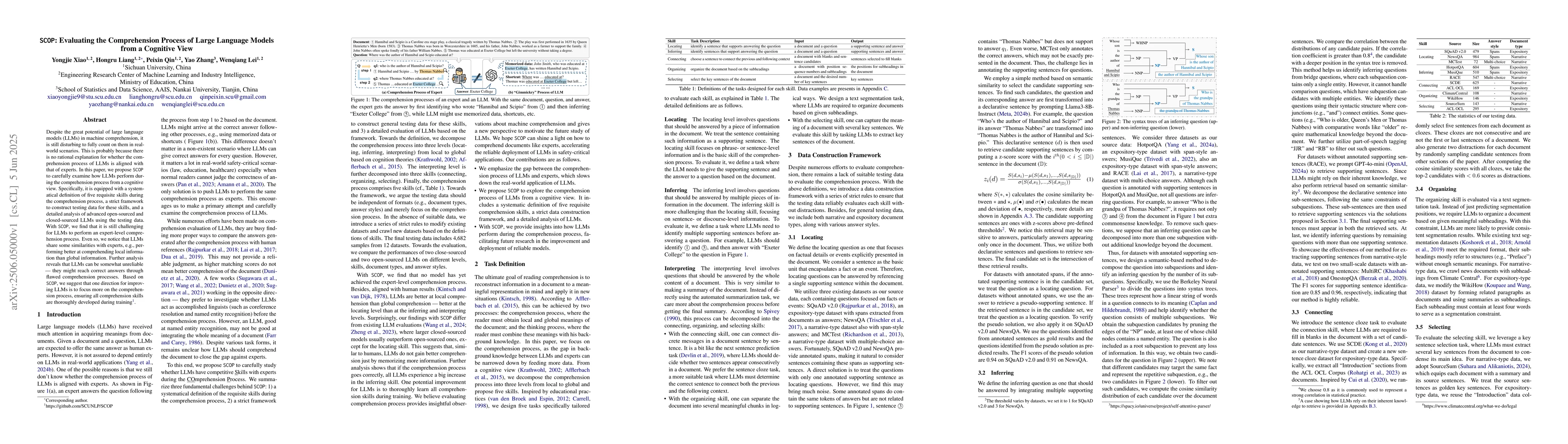The paper proposes SCOP, a system for examining the comprehension process of LLMs by defining five requisite skills, creating a testing data framework, and analyzing advanced LLMs using this data.