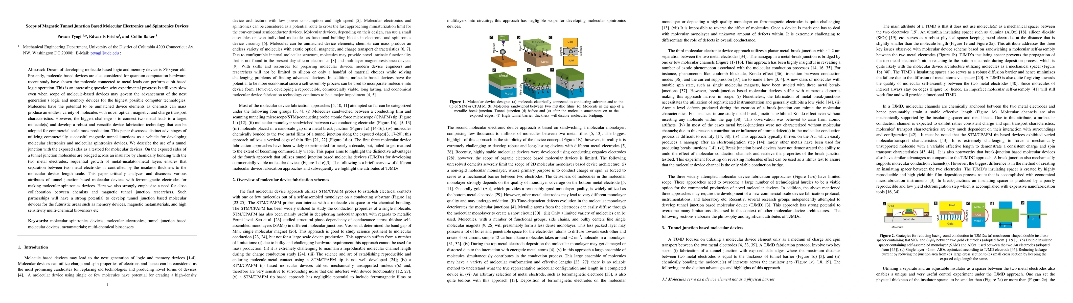 This paper explores the potential of magnetic tunnel junctions in advancing molecular electronics and spintronics, highlighting the advantages of using these junctions to bridge molecules and metal leads for next-generation logic and memory devices. It underscores the necessity of collaboration between chemists and magnetic tunnel junction researchers to overcome fabrication challenges and achieve commercial-scale production.
