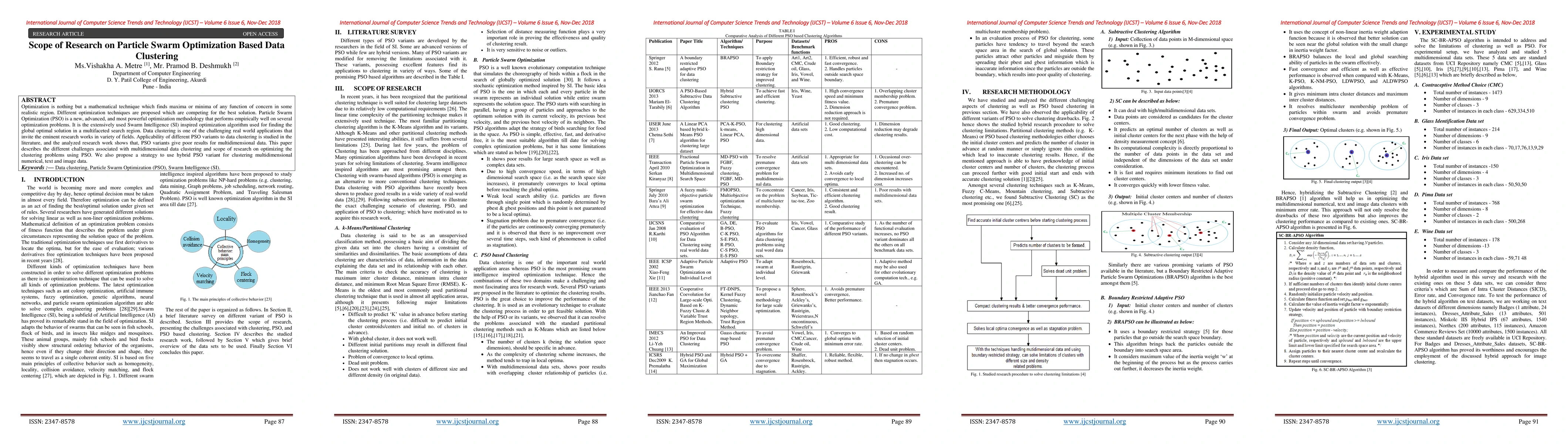 This paper explores the application of Particle Swarm Optimization (PSO) in data clustering, highlighting its challenges in handling multidimensional data. It proposes a hybrid PSO variant strategy to improve the clustering of multidimensional numerical, text, and image data.
