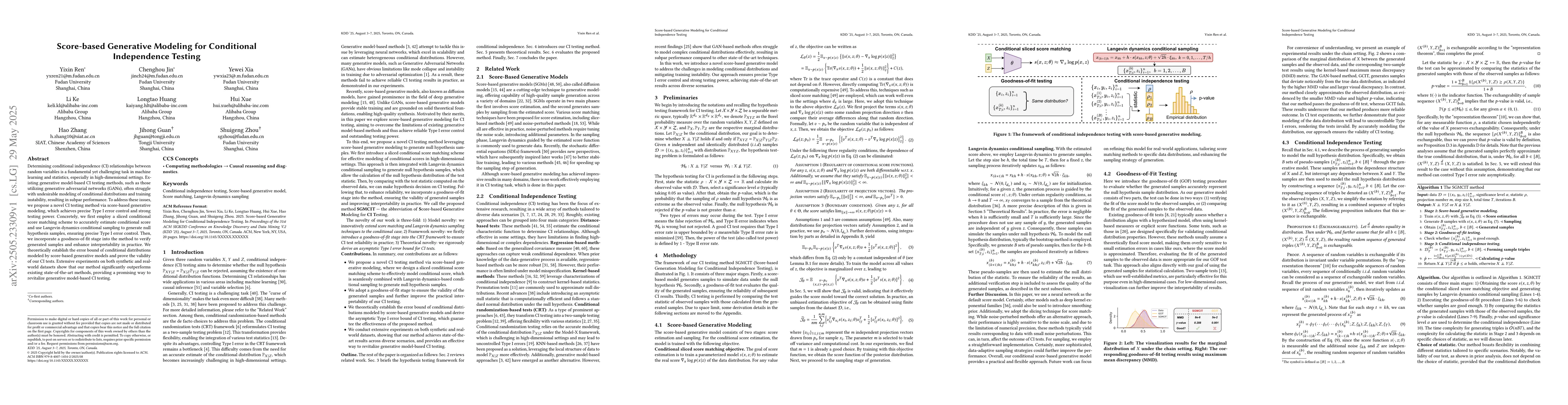 The paper introduces a novel CI testing method via score-based generative modeling, establishing theoretical error bounds and proving the validity of the proposed tests.