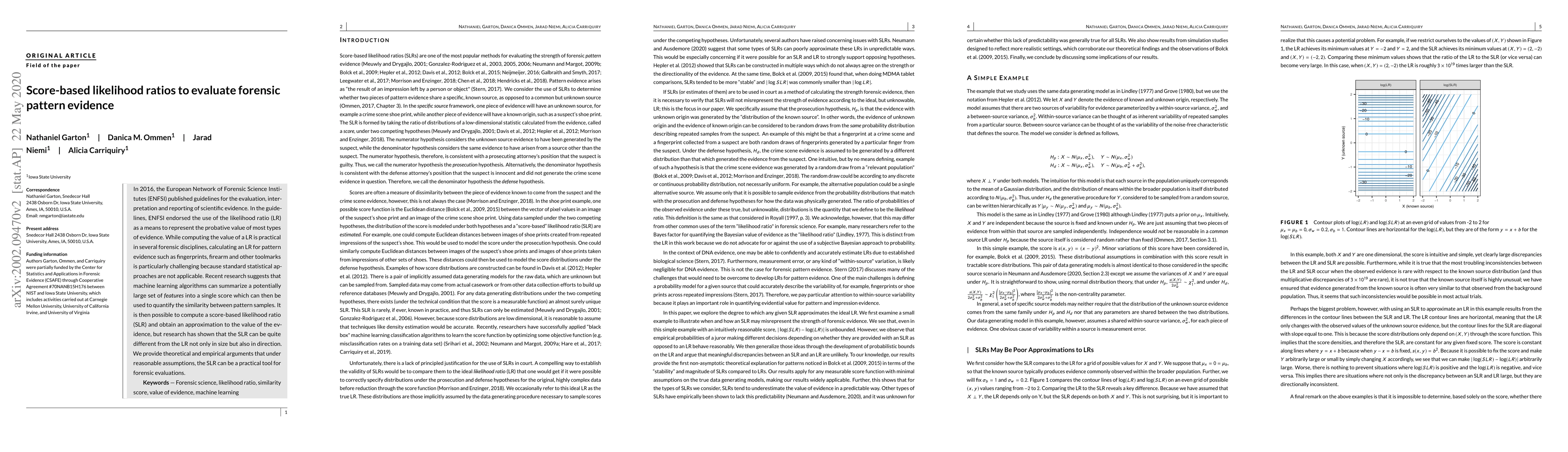 Research shows that score-based likelihood ratios (SLR) can approximate the value of evidence for forensic pattern analysis, offering a practical tool for evaluating fingerprints and other types of evidence. The SLR can provide a more accurate representation than traditional likelihood ratios in some cases.