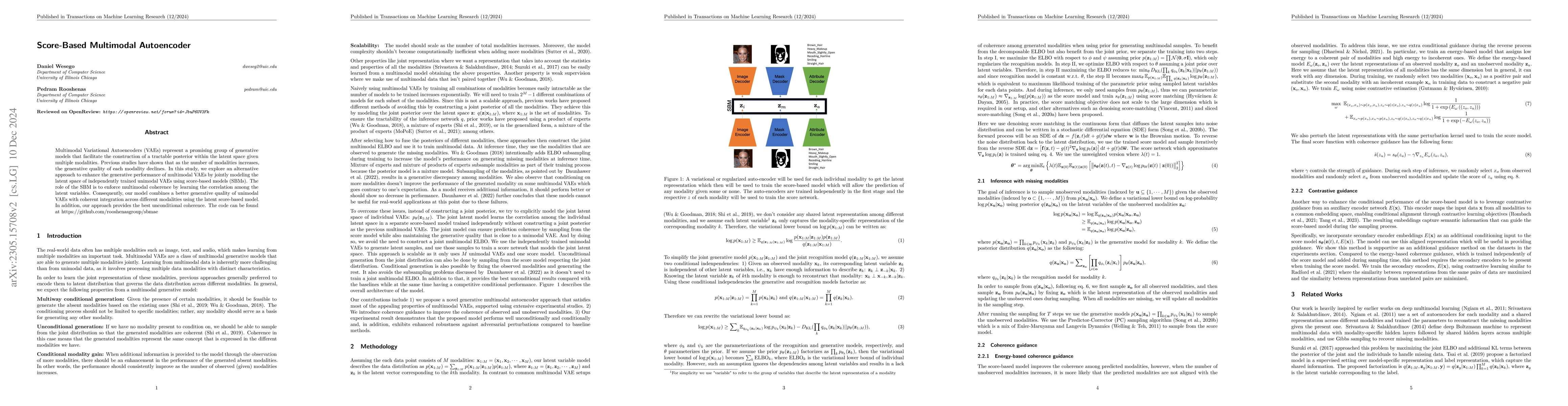This study proposes a novel approach to enhance multimodal Variational Autoencoders (VAEs) using score-based models (SBMs) to jointly model the latent space of unimodal VAEs, thereby improving generative performance and enforcing multimodal coherence by learning correlations among latent variables. The result is a model that combines the strengths of unimodal VAEs with integrated multimodal representation.