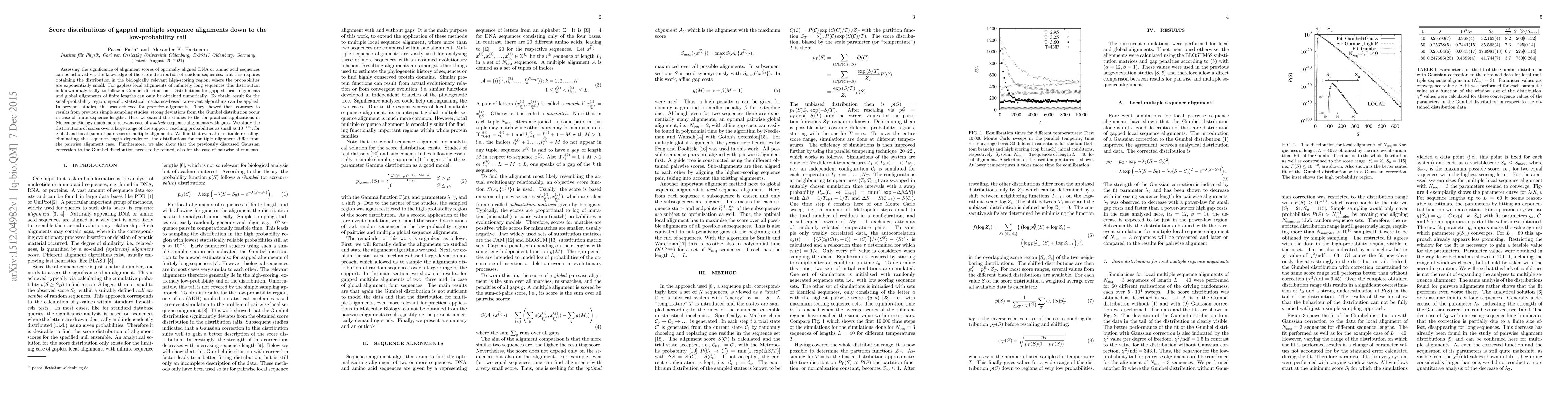 This paper investigates the score distributions of gapped multiple sequence alignments, extending previous studies on pairwise alignments to include multiple sequences. It reveals significant deviations from the Gumbel distribution, even after rescaling, and suggests a refinement of the Gaussian correction for both pairwise and multiple alignments.